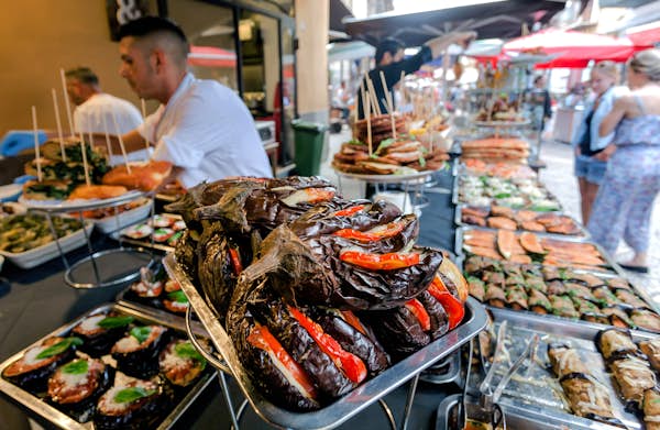 Where to try it: For monster-sized pani ca meusa in Palermo, go to celebrated sandwich shops Nni Francu u Vastiddaru and Porta Carbone. At Mercato della Vucciria, track down Rocky Basile, one of Palermo’s last-remaining mèusari, who hawks pani ca meusa from a hand-pushed cart loaded with a steaming stainless steel vat of boiled beef. For grilled-while-you-wait stigghiola, join the line at Mercato di Ballarò’s El Bocadillo.