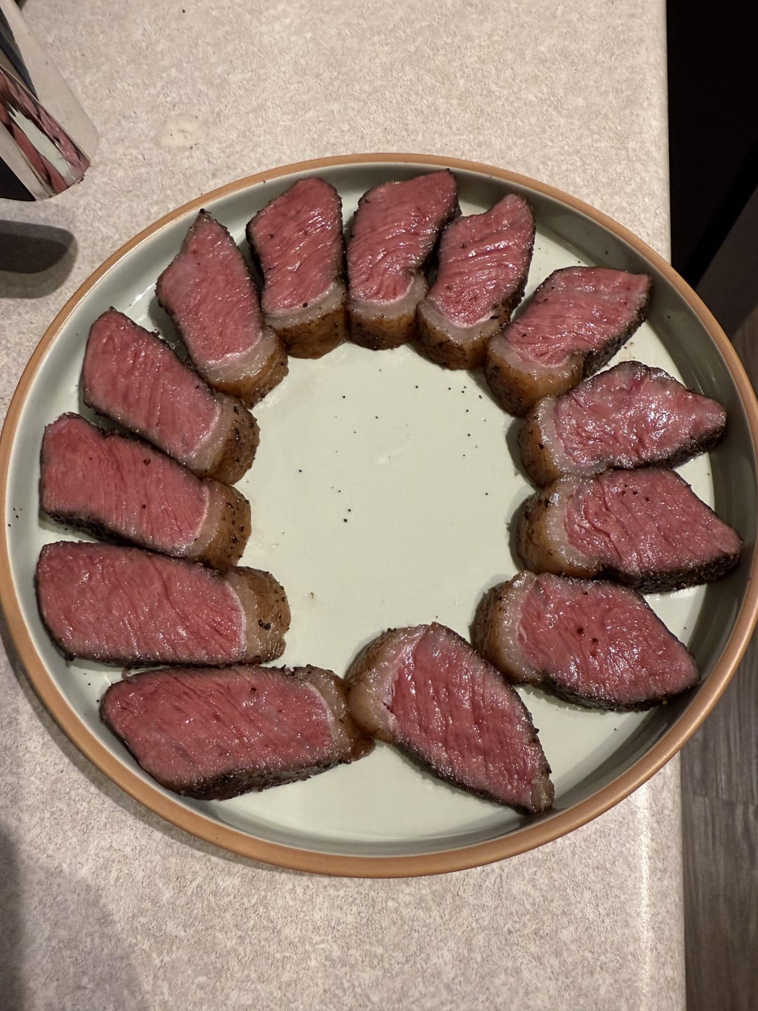 130 for 6 hours, seared on a grill. This did not need a a butter baste. Insanely rich on its own.by SupermanThatNiceLady 1 Comment ledhed88 8 months ago Looks amazing!Write A CommentYou must be logged in to post a comment.