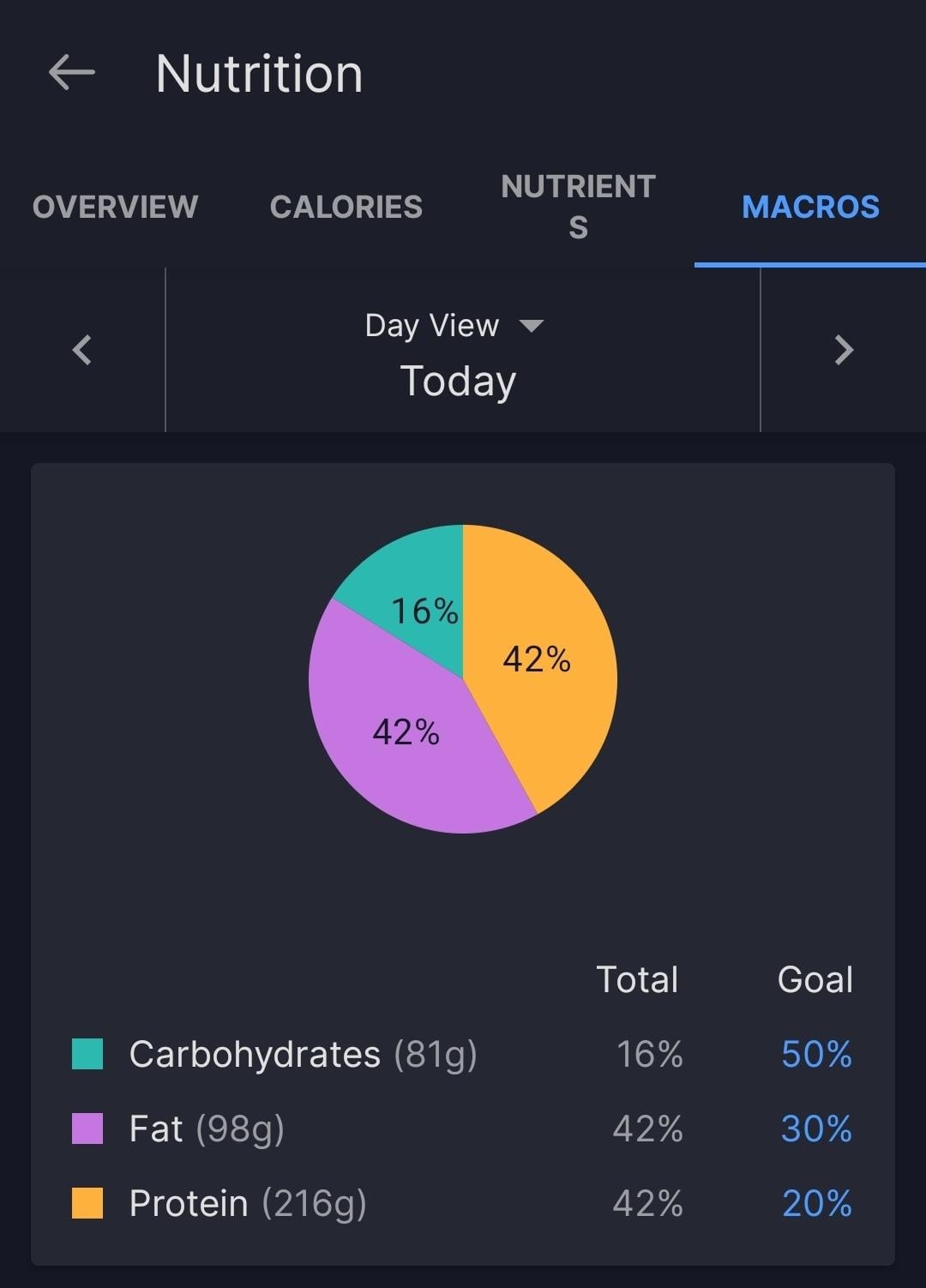 Also i dont know why, but MFP is having difficulties with me. Its showing incorrect protein numbers. I remove the meatballs from the breakfast and it suddenly gains like ~30g protein. I add all the items up in a calculator and it shows over 250. So im trusting my additions.