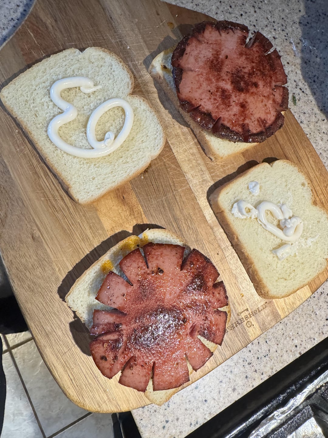 This was my first attempt. Turned out great I think. Started at 225 for one hour, then bumped up to 250 for an additional 1.5 hours. Mustard for a binder, then the seasonings were Kinders SPG, and the Gospel all purpose rub. Finished by searing in a pan for the ultimate sandwich!