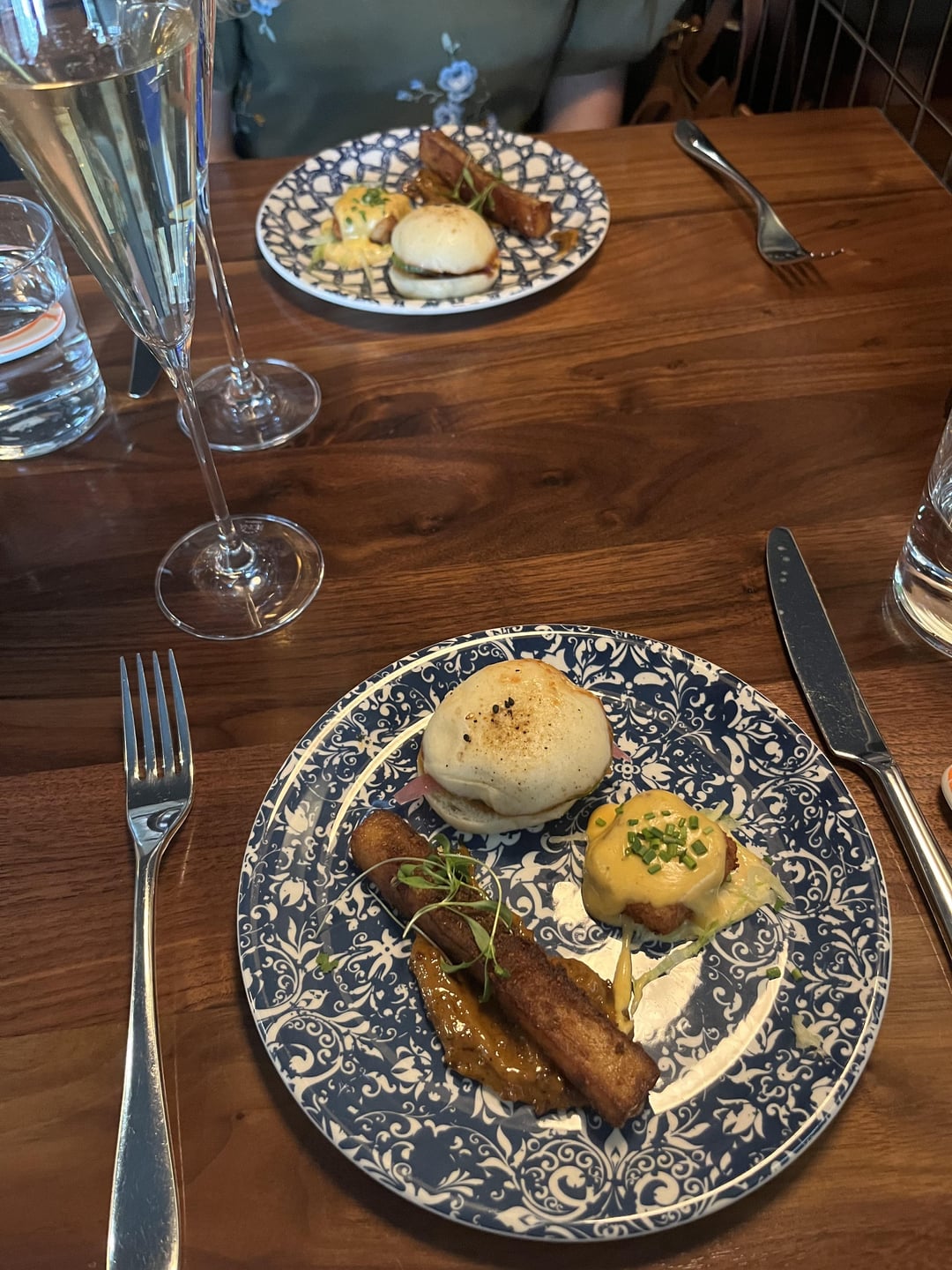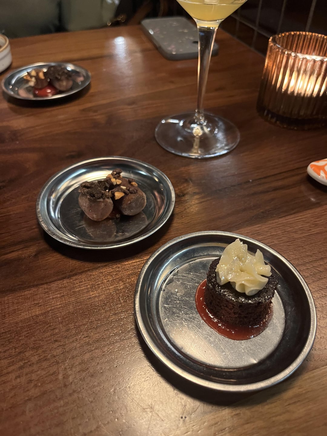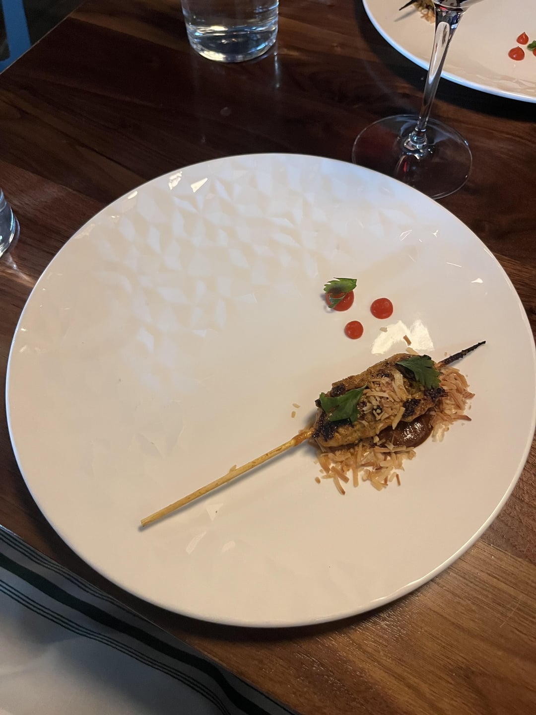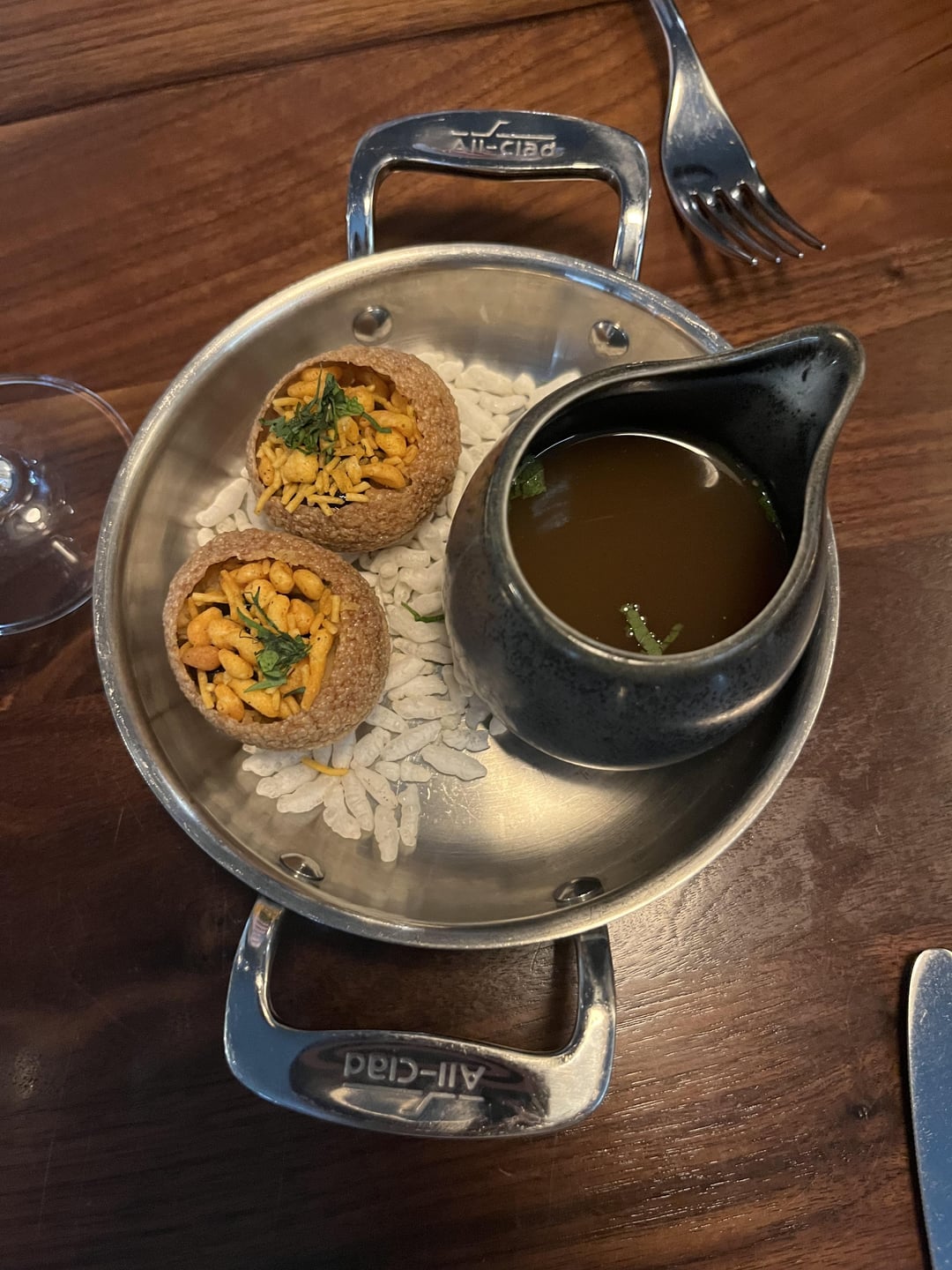 Their website calls their food ‘Bengali fusion,’ which is probably correct but they clearly take inspiration from all over India and Southeast Asia, resulting in some fascinating (and delicious) flavor combinations. There are a few local Ohio touches, too: the chocolate-peanut butter ‘buckeye’ in the petits fours and replacing the hard-boiled egg and cucumber in the nasi-lemak with an egg salad.