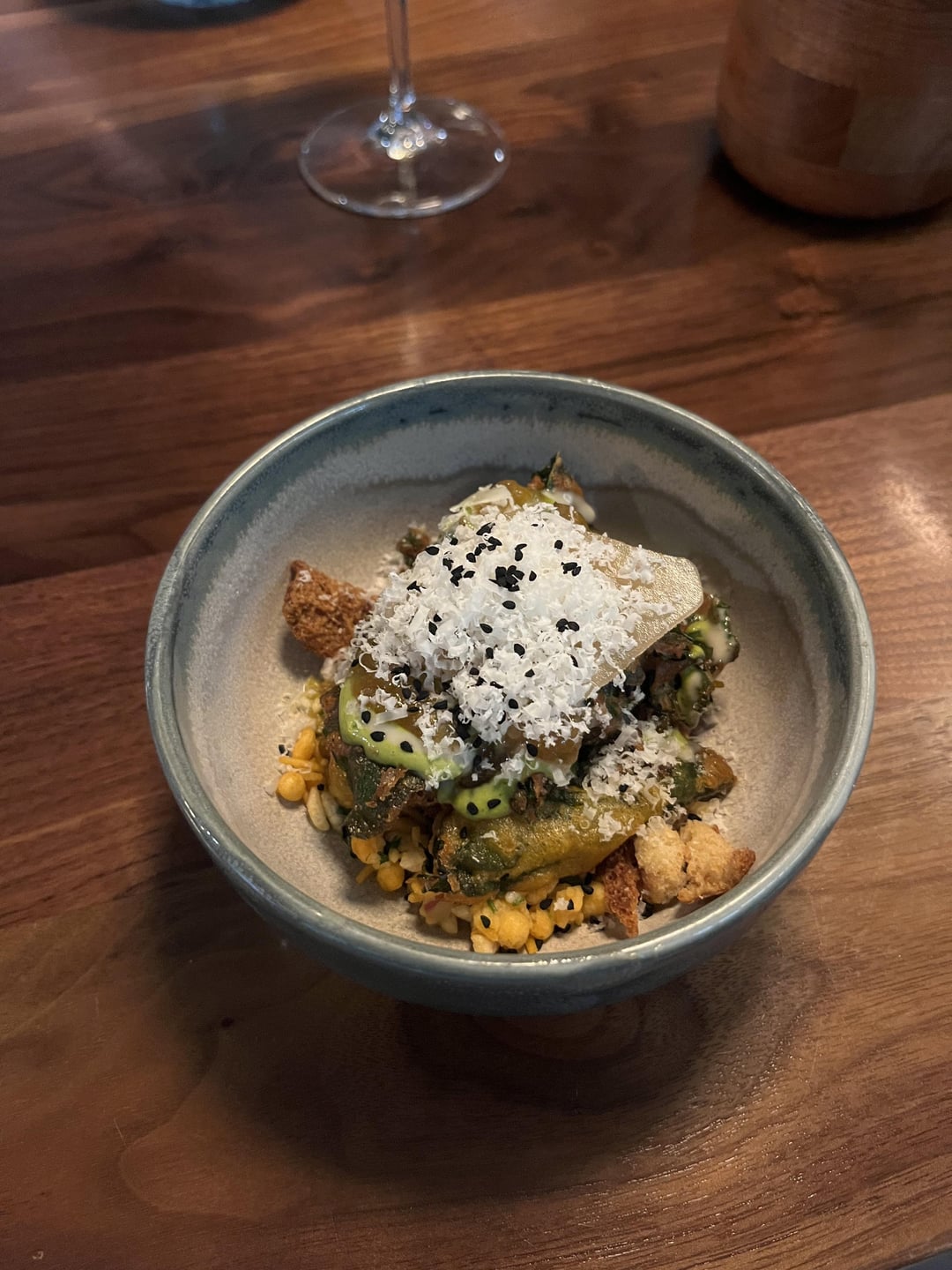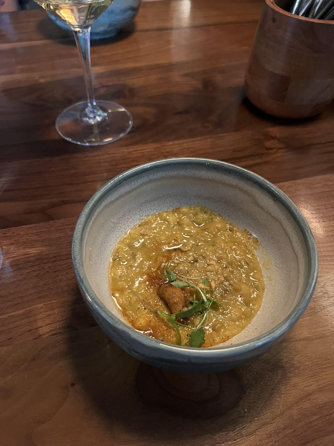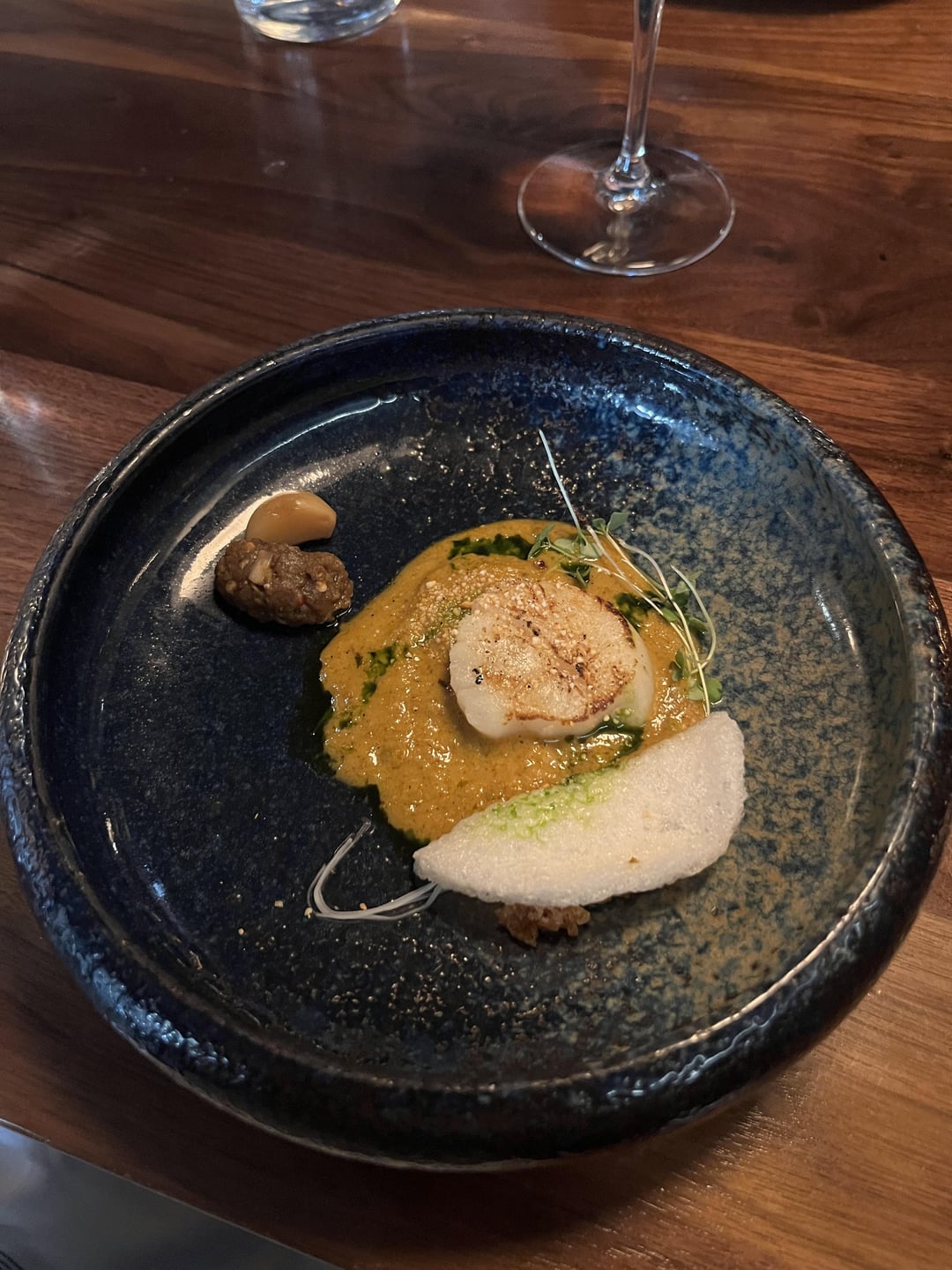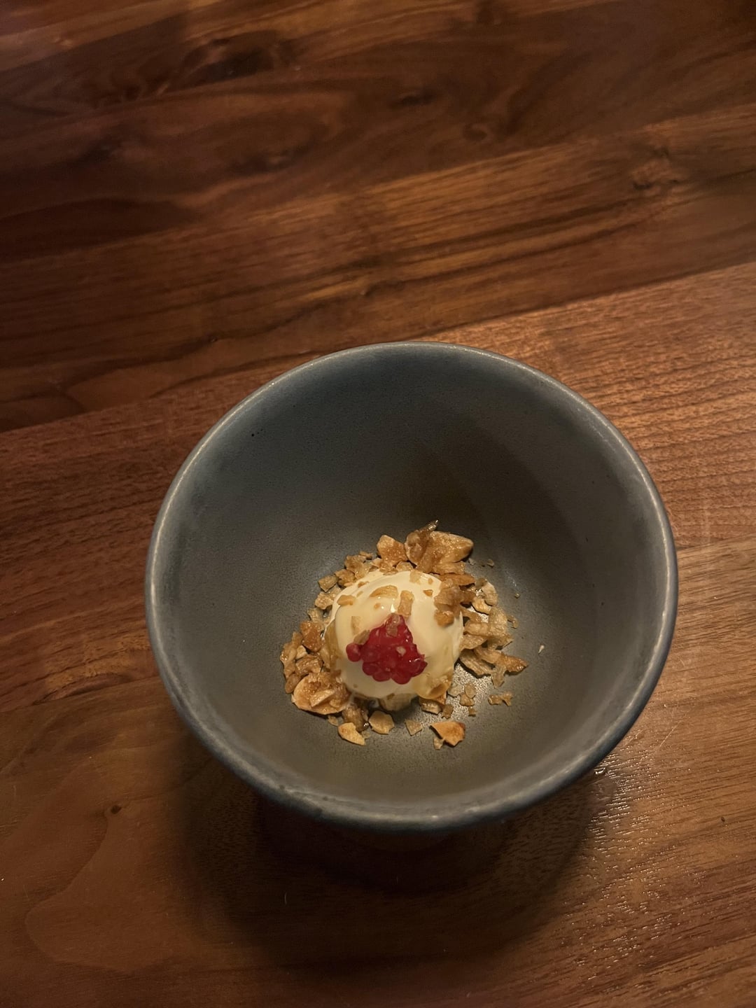 Notes to start: I would call this a very solid one-star restaurant. The food is fantastic, the wine pairing stellar, but the vibes they are going for are energetic and creative, not particularly formal. Major contributing factor is that there is no uniform for the staff – it was a mishmash of semi-casual to semi-formal that felt a little unprofessional at times. Service overall was good though; they were quick to reset table settings when we got up to use the bathroom, very knowledgable and informative on dishes and wines, they even noticed twice when we finished our wine pairing early, and topped us off so we would have enough to go with the next course.