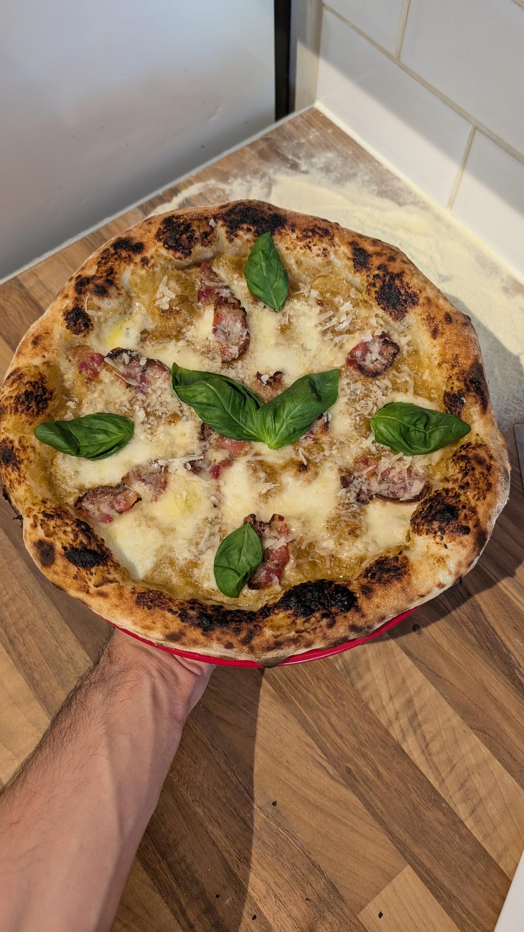 This was seriously tasty 🤤😋Peeled and fried aubergine cream base, fior di latte, slices of pancetta paesana. Grated parmesan and fresh basil post bake.24hrs dough, 73% hydration, molino vigevano costiera 70% + oro fibra 1 30%. by ilsasta1988 Write A CommentYou must be logged in to post a comment.
