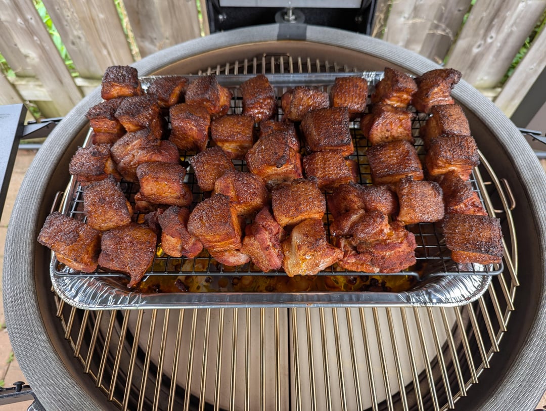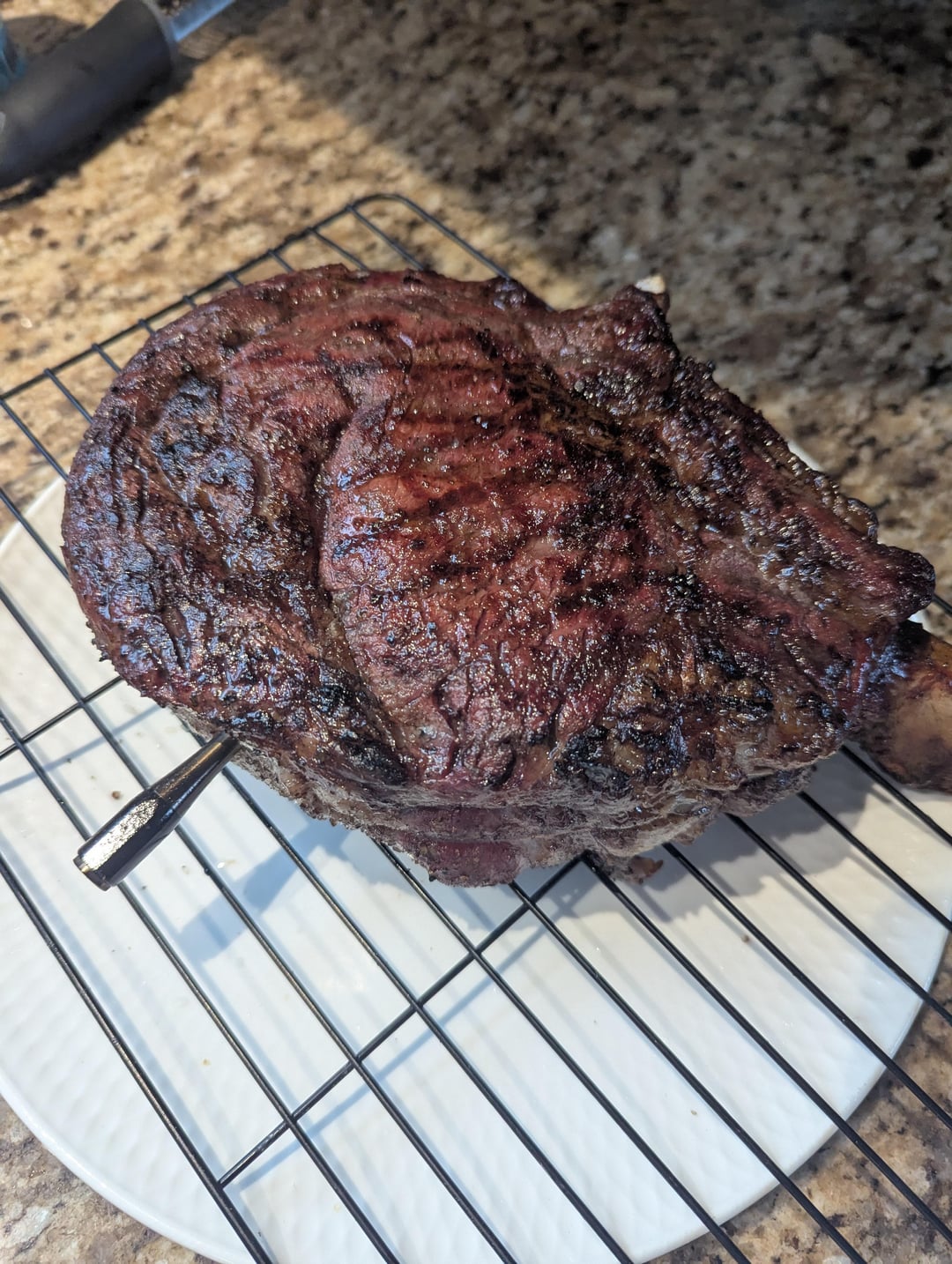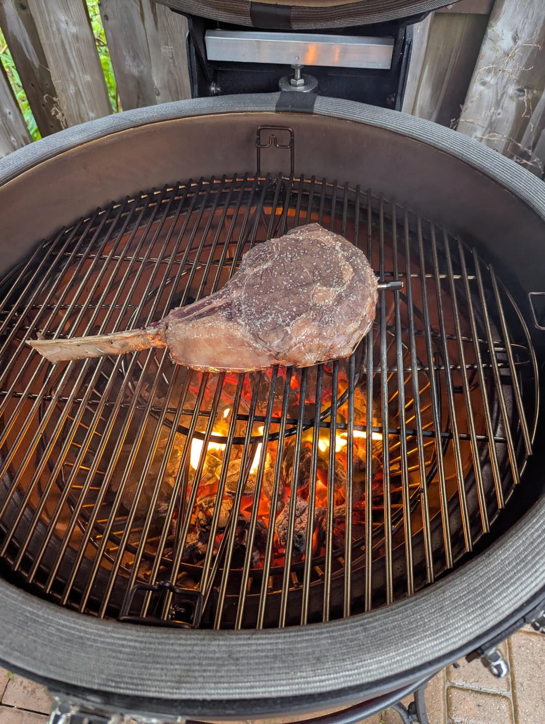 – last cook : pork belly burnt end, cooked for about 5 h in total ( 2.2kg, half of the pork belly I got), and then 2 hours later a tomahawk seared at 650°F, then served with garlic infused butter