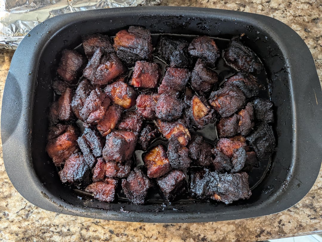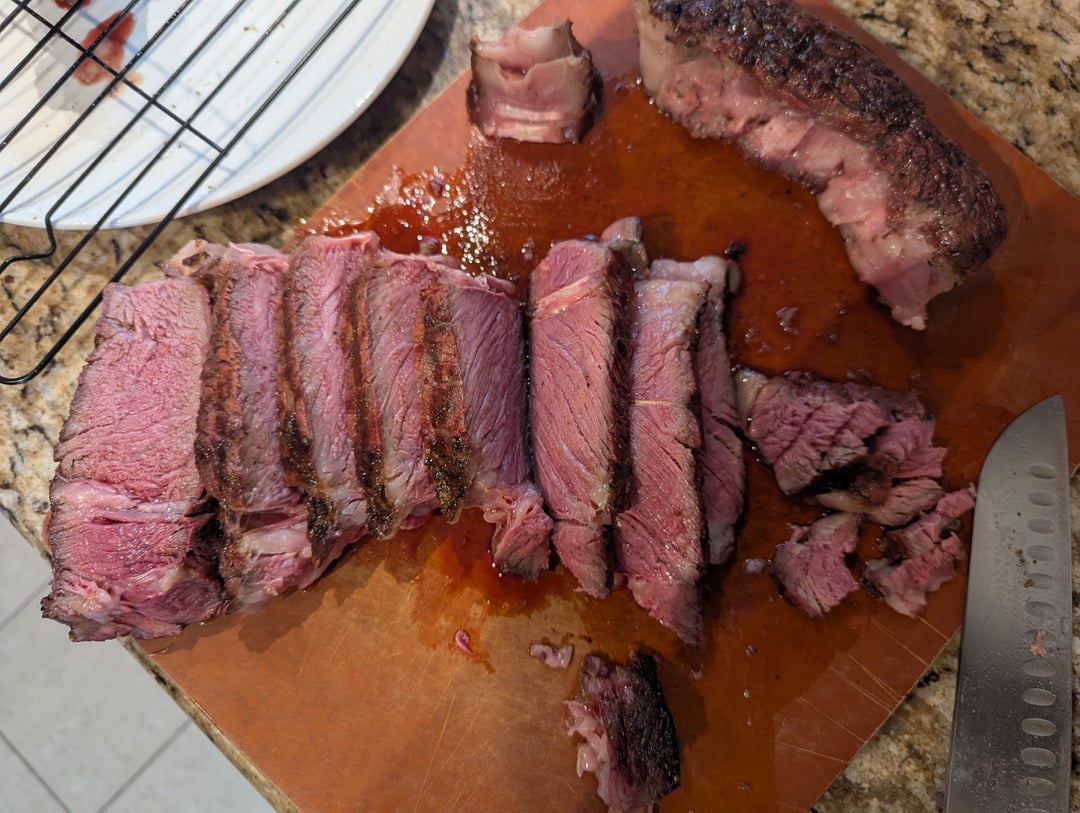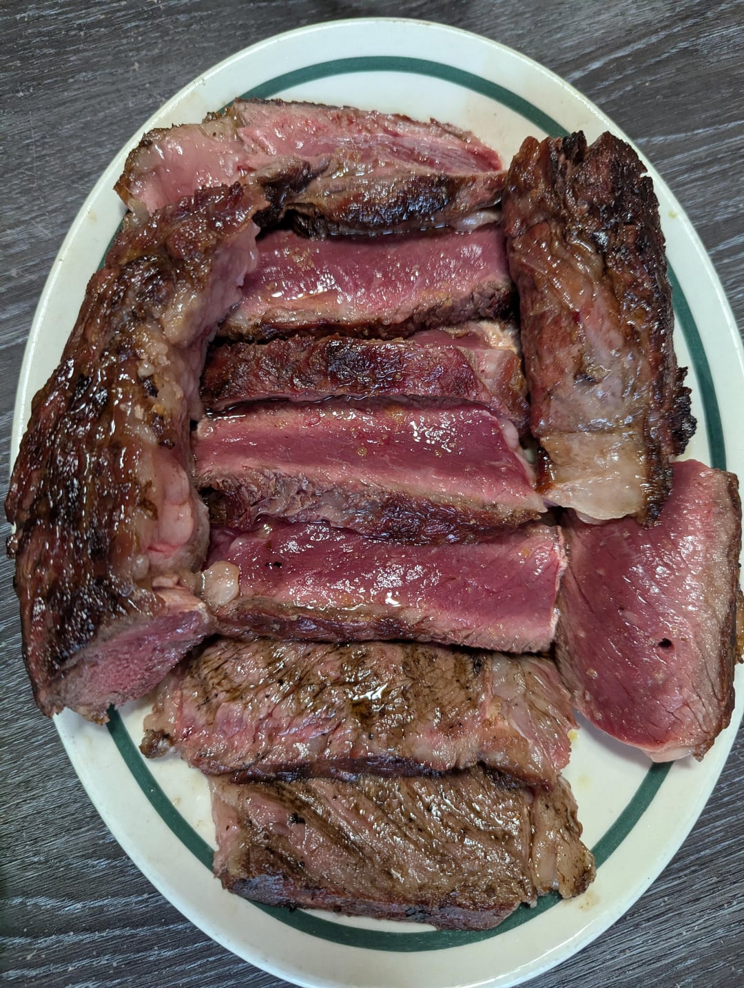 – last cook : pork belly burnt end, cooked for about 5 h in total ( 2.2kg, half of the pork belly I got), and then 2 hours later a tomahawk seared at 650°F, then served with garlic infused butter