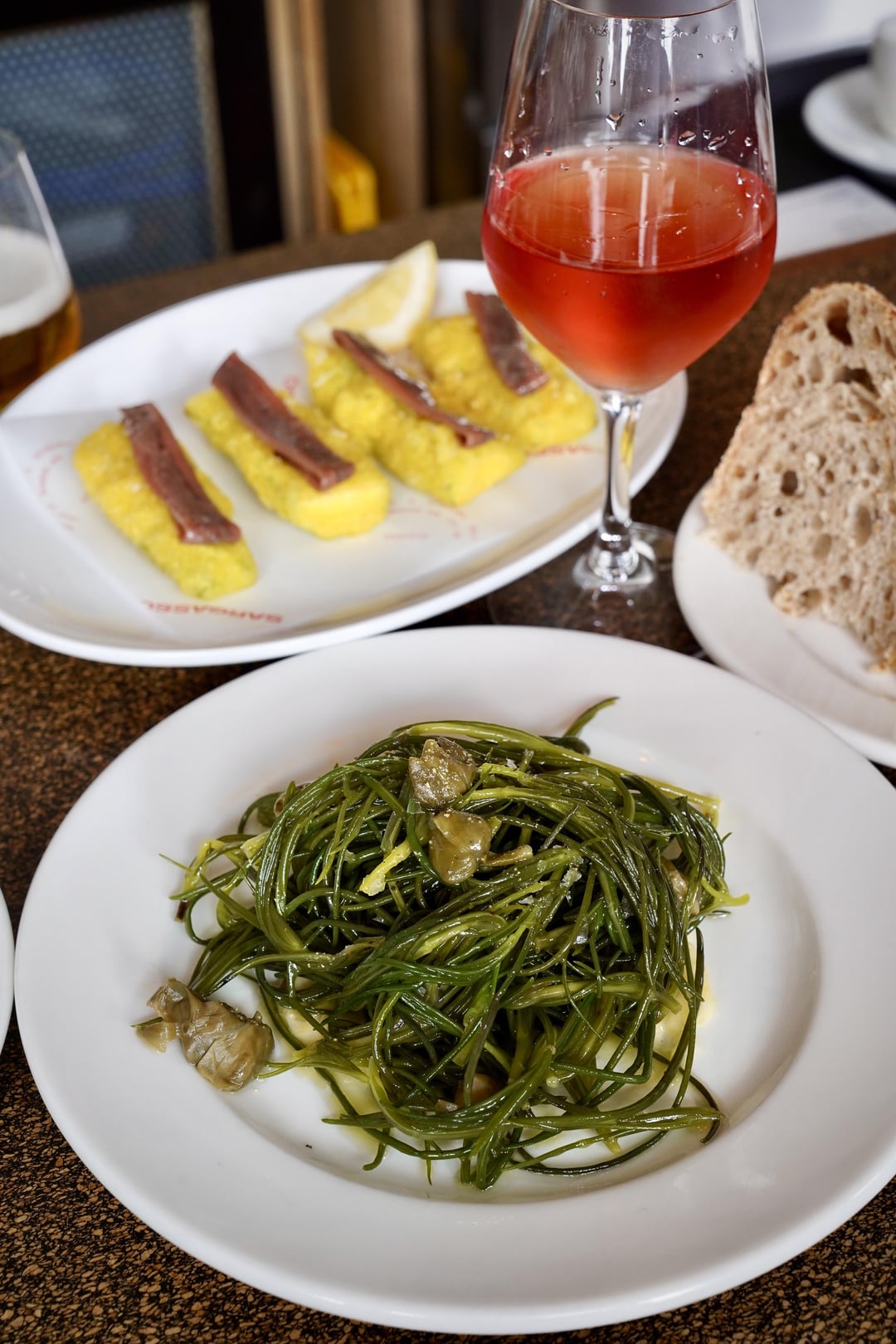 Swipe to see my pizza, theirs, and some awesome sautéed agretti, and courgette and anchovy fritters that probably served as the inspiration for this dish.
