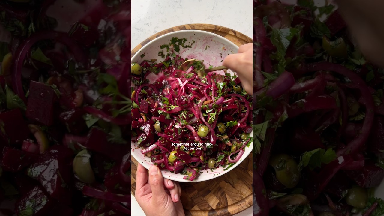 will never get tired of this pickled beet salad – been pairing it with crispy breaded tofu nuggets on the side to make it into a complete meal.