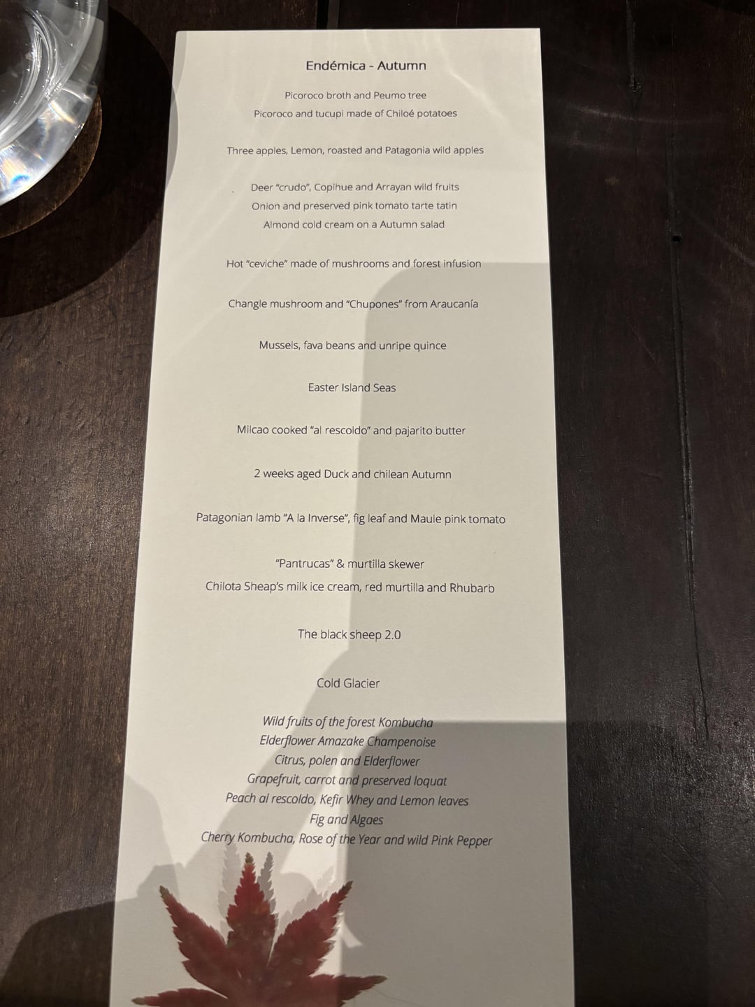 We had their Autumn menu. 16 courses for $179,000 CLP per person. Opted for the juice pairing. Michelin doesn't have any recs for Santiago at the moment but Borago is currently #29 on World's 50 Best. Would describe this as an elevated twigs and berries experience