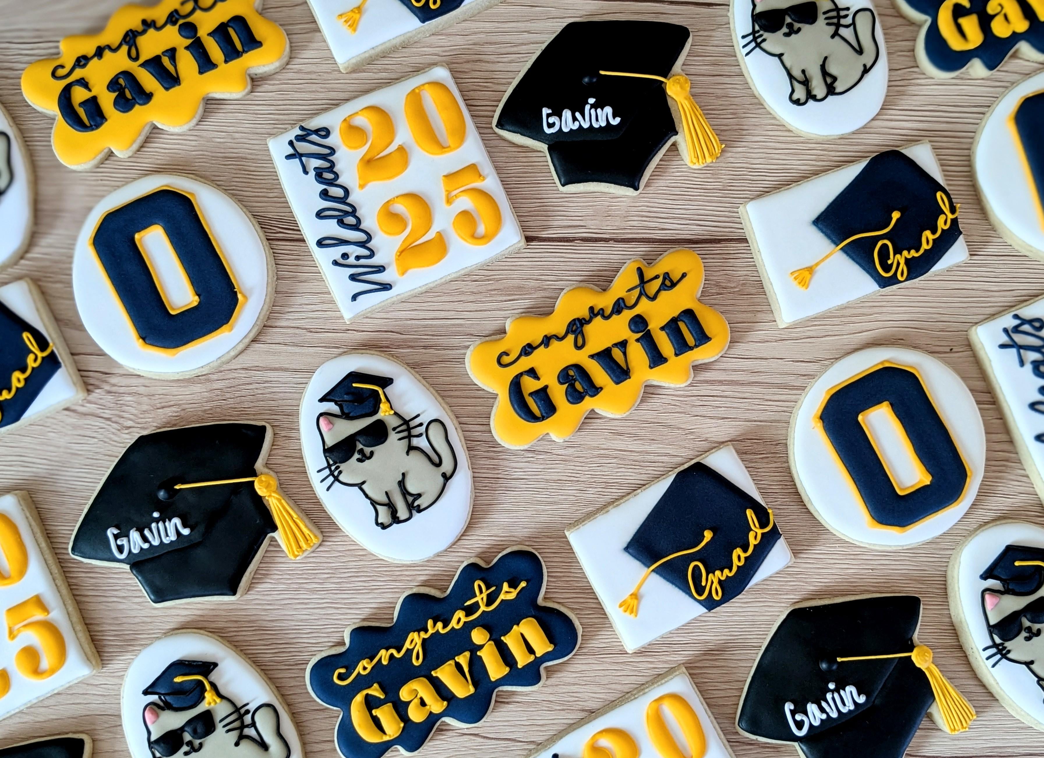 These are for a repeat customer, and she always tosses in a cute, original idea for a cookie design. This time it's the cat in a graduation cap for her son. I just love how it turned out!