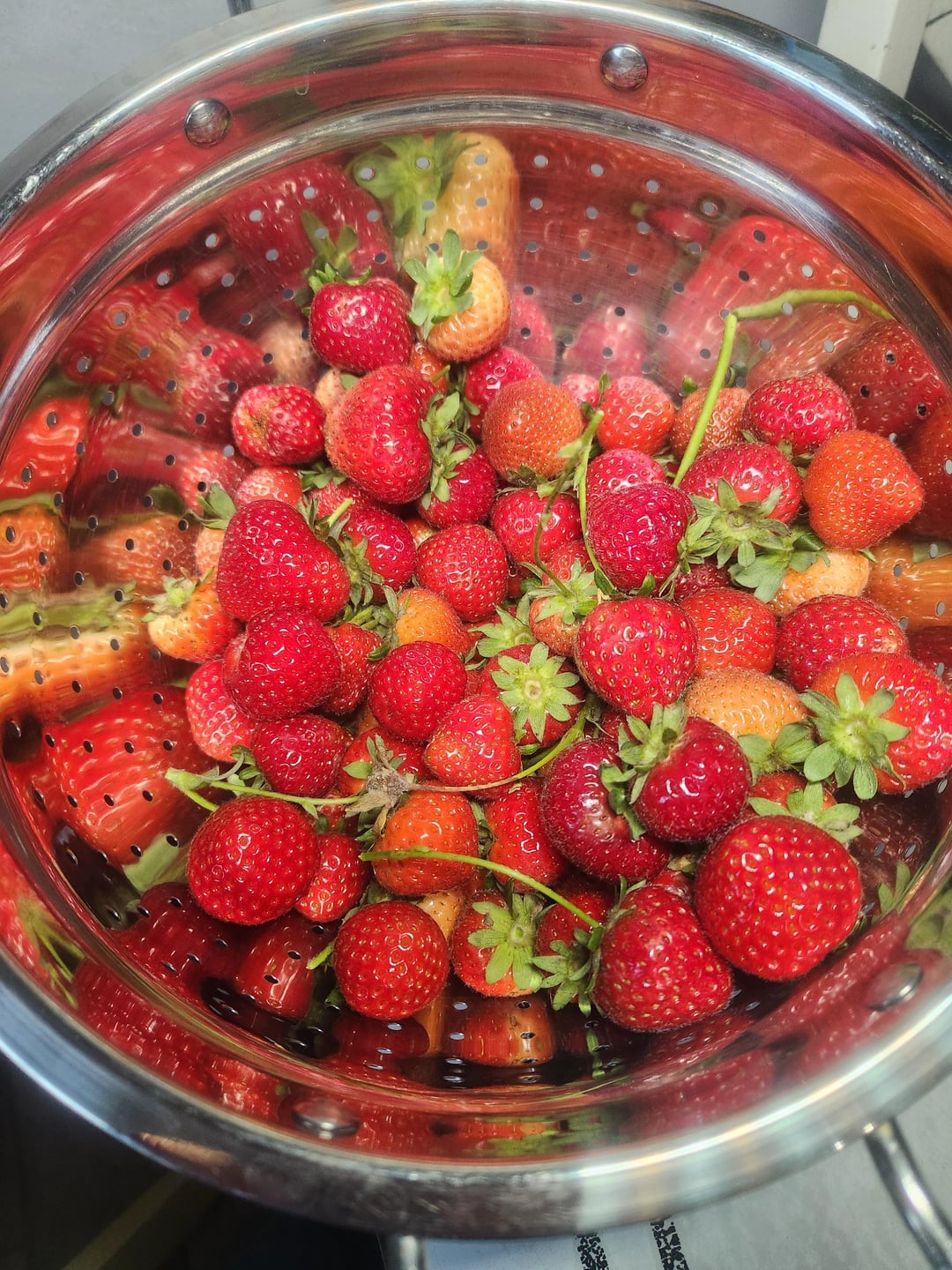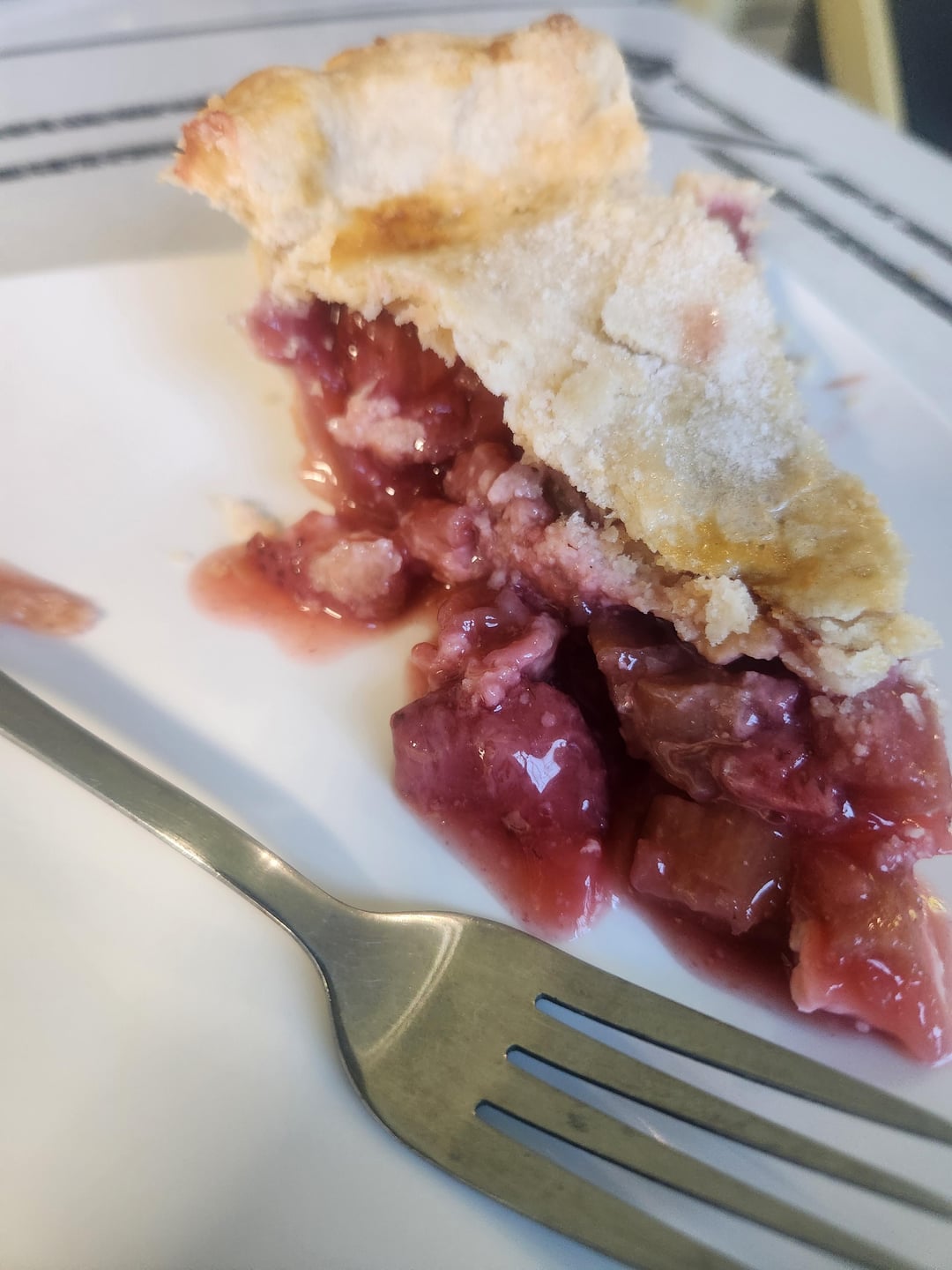 This is my pie. I grow strawberries and rhubarb so the ingredients are always fresh. There is synergy that takes place during cooking that makes a unique flavor that i find irresistible.