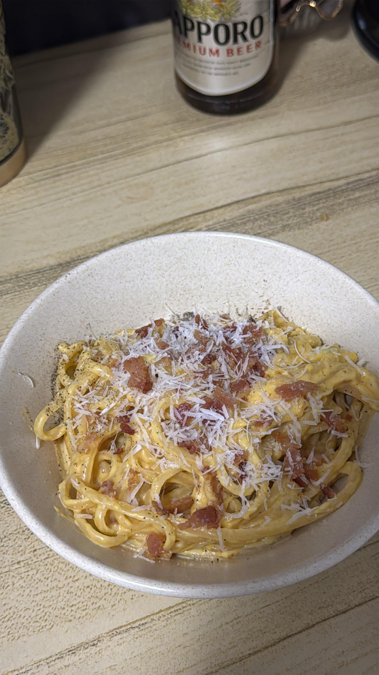 Couldn’t find pancetta/Guanciale. But made it work with smoked Spanish bacon.