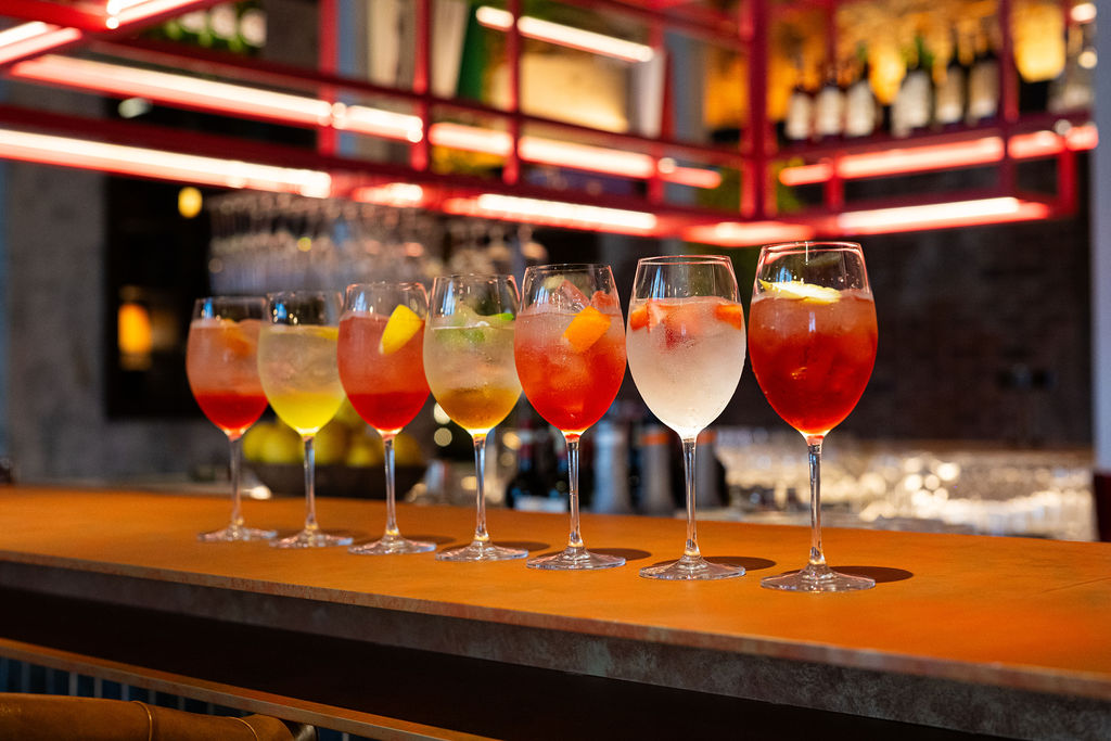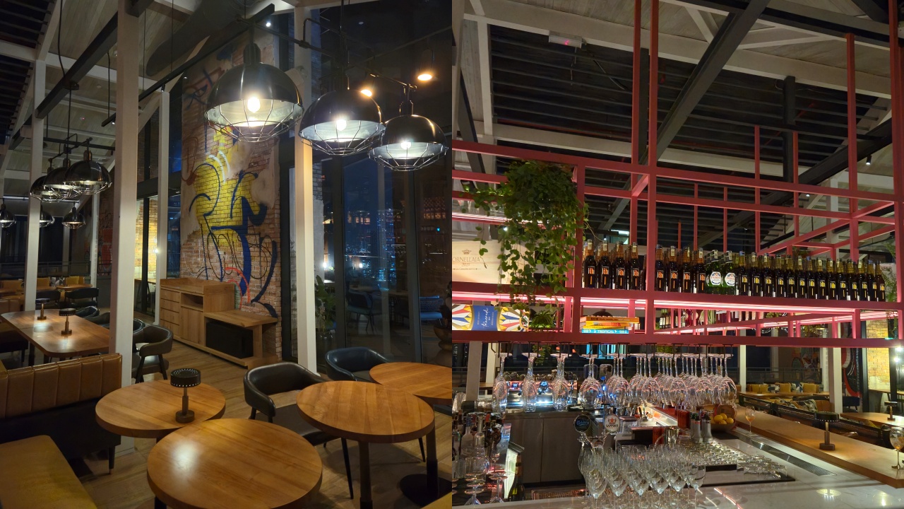 Overall, the space strikes a perfect balance between intimacy and openness, featuring a variety of comfortable seating options. All of the elements come together to create a lively and inviting atmosphere, ideal for dinner or drinks with your loved ones.Range of drinks