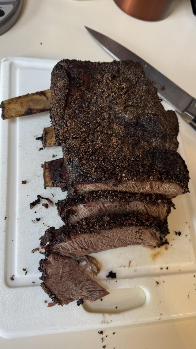 First time doing beef ribs. Went to the butcher and asked for plate ribs and he gave me these. I assume these are the chuck version as they were 4 bone and not the prized 123A 3 bone ones but meh I made the best of them and would probalby do them again.