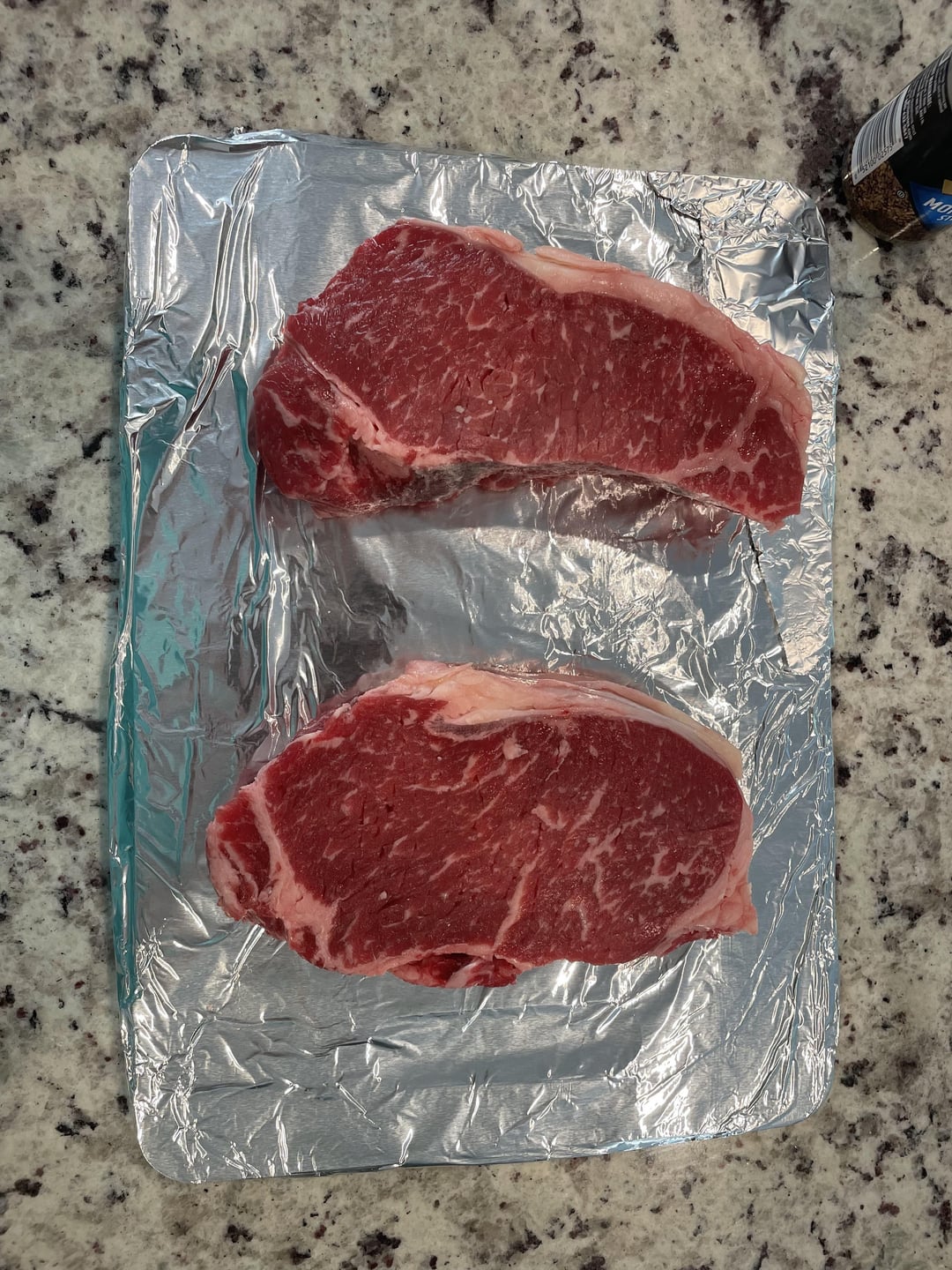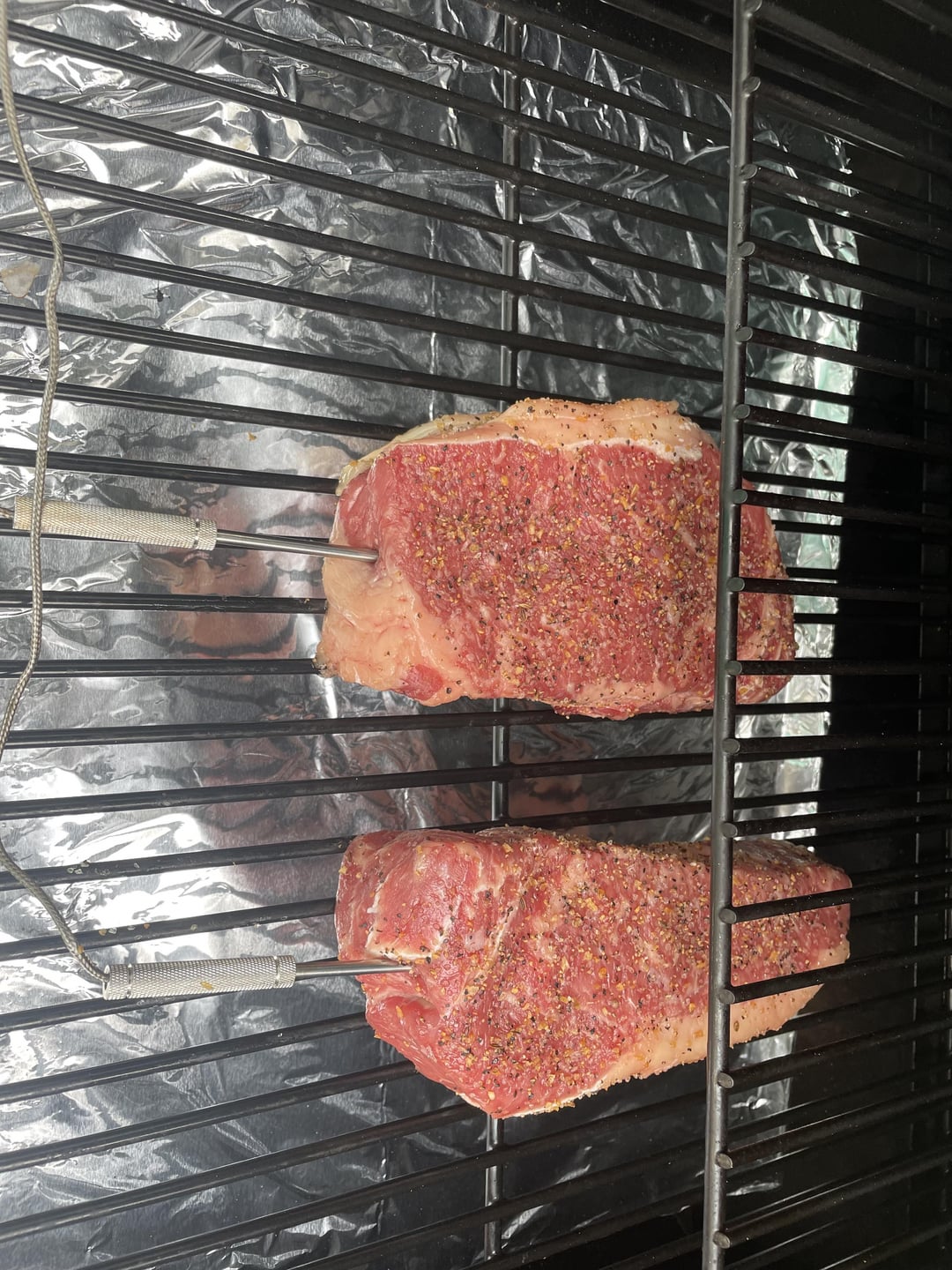 Put steaks in the Traeger for about 50 minutes at 225° until steaks hit 120°. Seared on cast iron for 1 minute each side. Never fails best way to cook a steak!