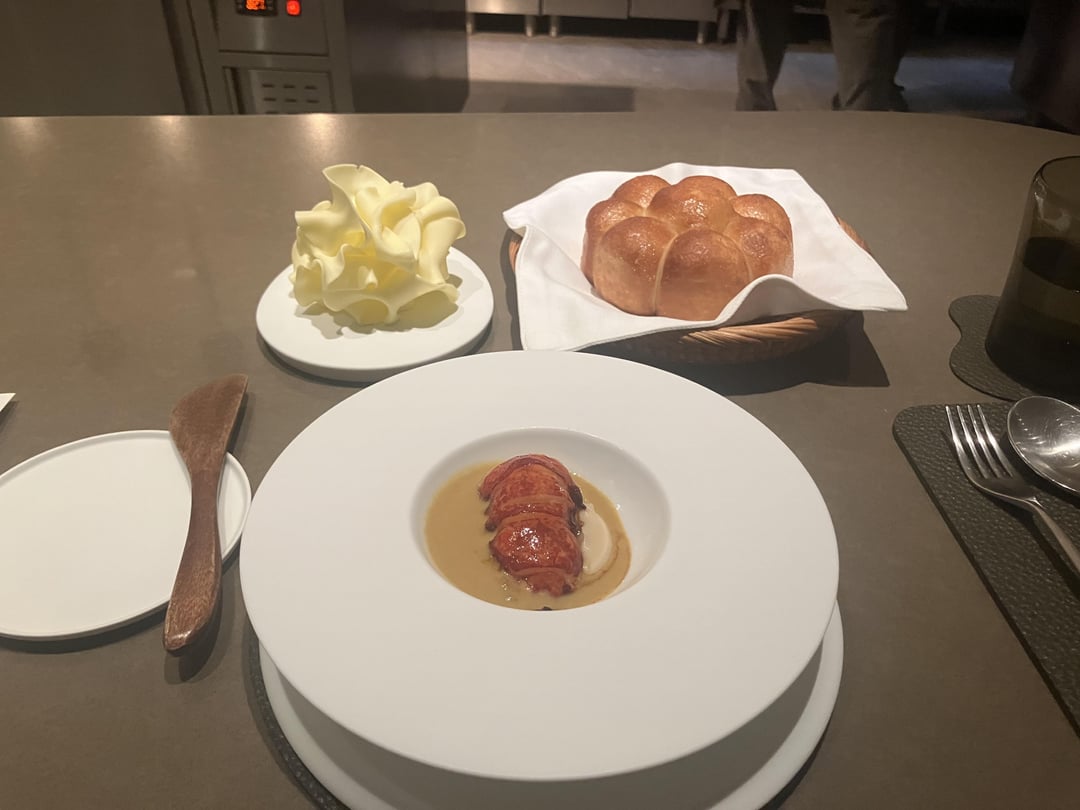 To dip up the sauce, an outstanding bread course consisted of bread that had been steamed, deep fried, and baked, alongside homemade butter using Malaysian cream. This was easily in the top 3 best bread courses I’ve ever had. The triple cooking gave the outside a crispness that contrasted with inside’s chewy fluffiness. The butter was beautifully formed into a wavy structure and tasted as good as anything France has ever produced. Truly outstanding.