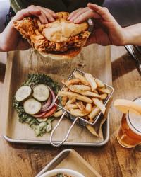 The Funky Chicken is a fried chicken sandwich offered on the new spring menu at Phantom Canyon Brewing Co.