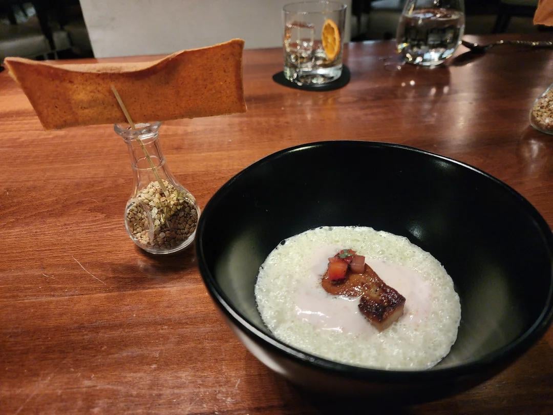 (9) Foie Gras with cream foam and rhubarb – This was very light considering it was a Foie Gras dish. Not really all that exciting but good, nonetheless.