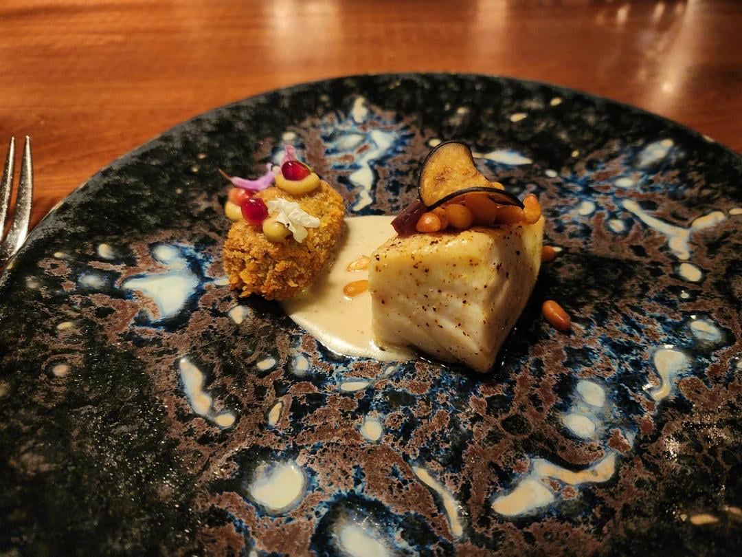 (10) Halibut with Eggplant Croquet – This one was a little on the heavy side. Nice fluffy fish and the eggplant worked well with it. Pomegranate seed with the puree and fish, very good blend
