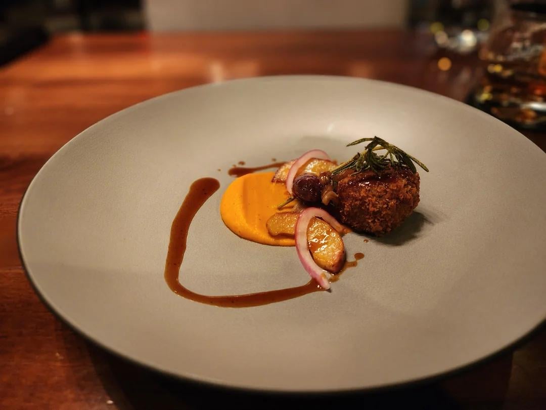 (8) Duck Croquet with duck tongue & Peaches – This was a pretty heavy dish. The Croquet was nice and kind of had a southern feel to it.