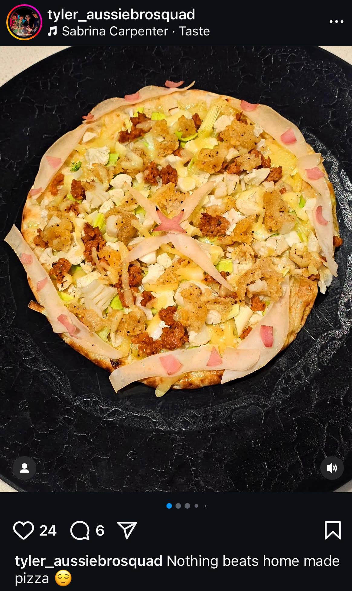 BPhiloSkinner 5 months ago The crust is proper, and there are fried crunchy bits on top…but what is that pinkish stuff? Ham, pickled ginger, some strange Aussie fruit?