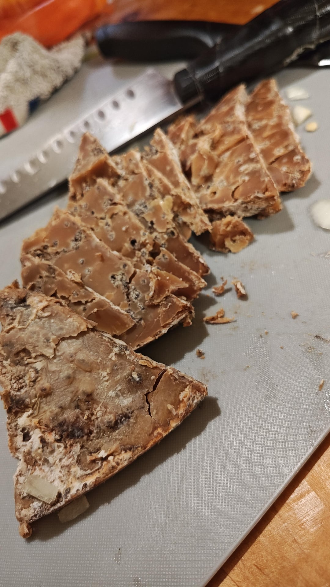 You guys, it smells incredible, but I'm afraid to eat it. Will this kill me? Blue cheese after sitting in a temp controlled box for 5 years. It smells otherworldly, like a fine block of limburger, but it's hard and crumbly. I'll eat it, if someone says it won't kill me. The neighbors are ready to bury me.