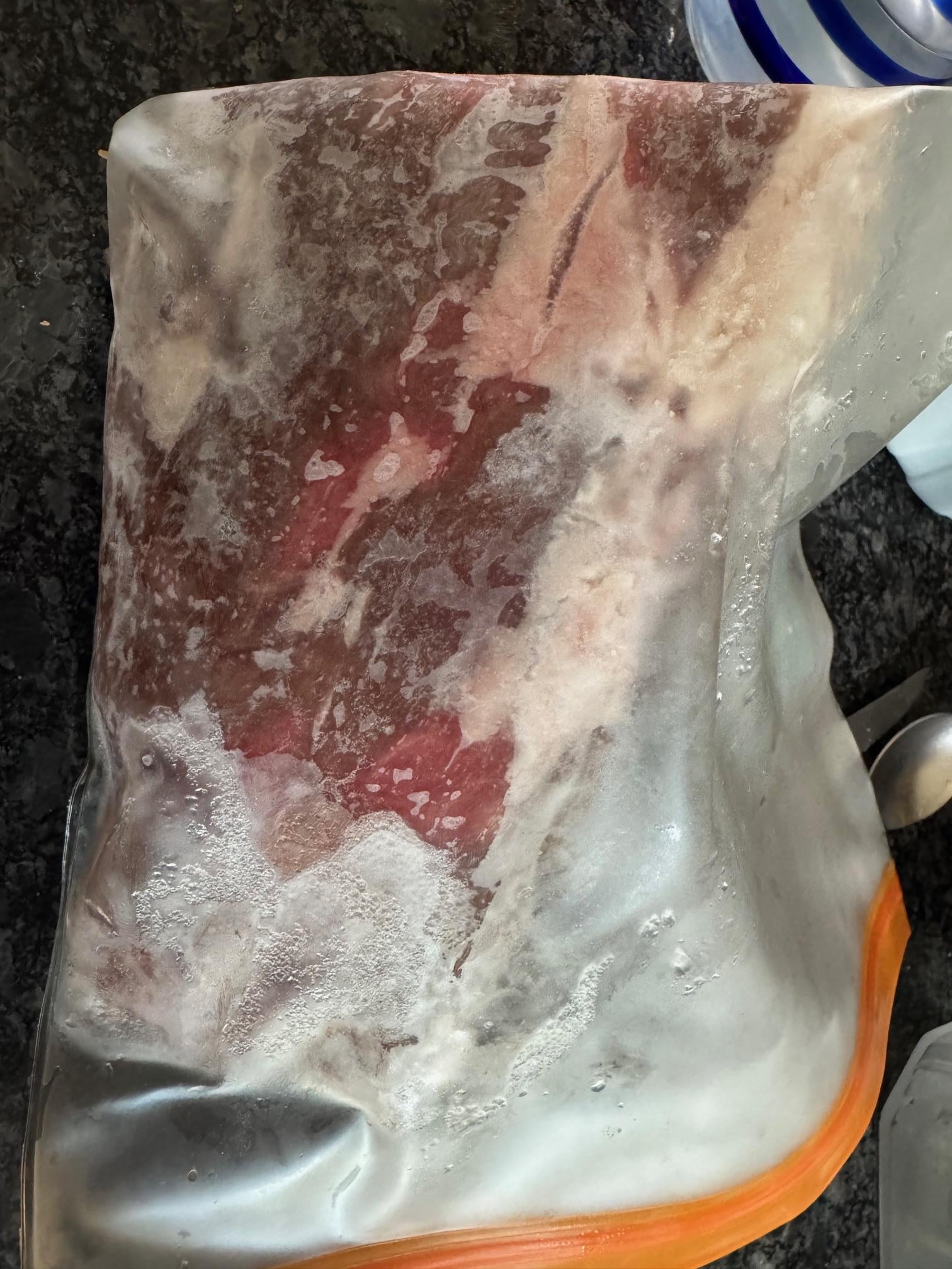 I also have a couple more questions. Now that it's frozen I see all too clearly that my vacuum sealing has left something to be desired. Should I re-do it, with the equipment that will be arriving tommorrow, or will this come out okay as is?