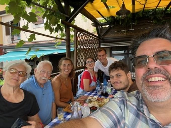The usual course of the day involves talking, eating, and spending time together. We often go to my cousin’s daughter’s home in Gorizia. Interestingly, when I’m there, the male family members are particularly happy because they enjoy eating meat with me. You see, most of my cousins are vegetarians and very health conscious. So, Sandra’s husband, Claudio, and her son-in-law, Carlos, fire up the grill to cook ćevapi, a popular ground meat dish in Slovenia. These grilled minced meat sausages originated in the Balkans during the Ottoman period and are a staple of Slovenian cuisine, often served at barbecues. However, this time, Sandra’s grandson, Davide, had a different idea. On Saturday, he announced that we would visit Trieste, a city about a half-hour drive away, for a stroll, a museum visit, and lunch at an Osmica.