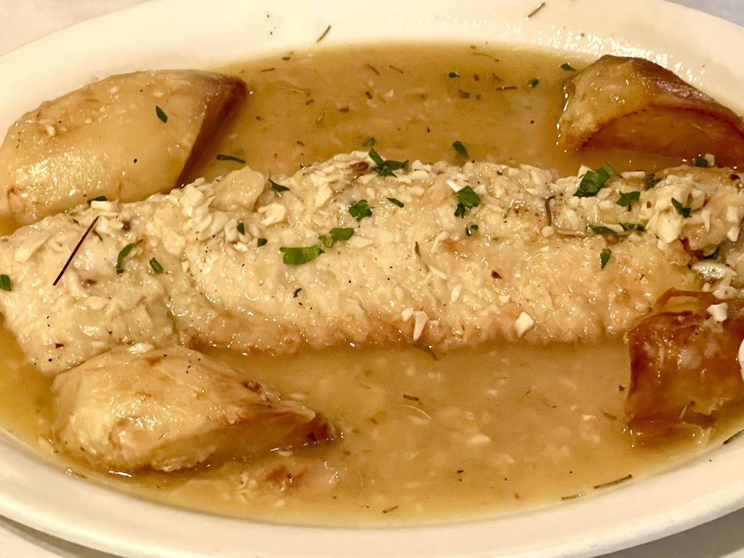 Sauteed veal with prosciutto and fresh herbs in a light white wine sauce