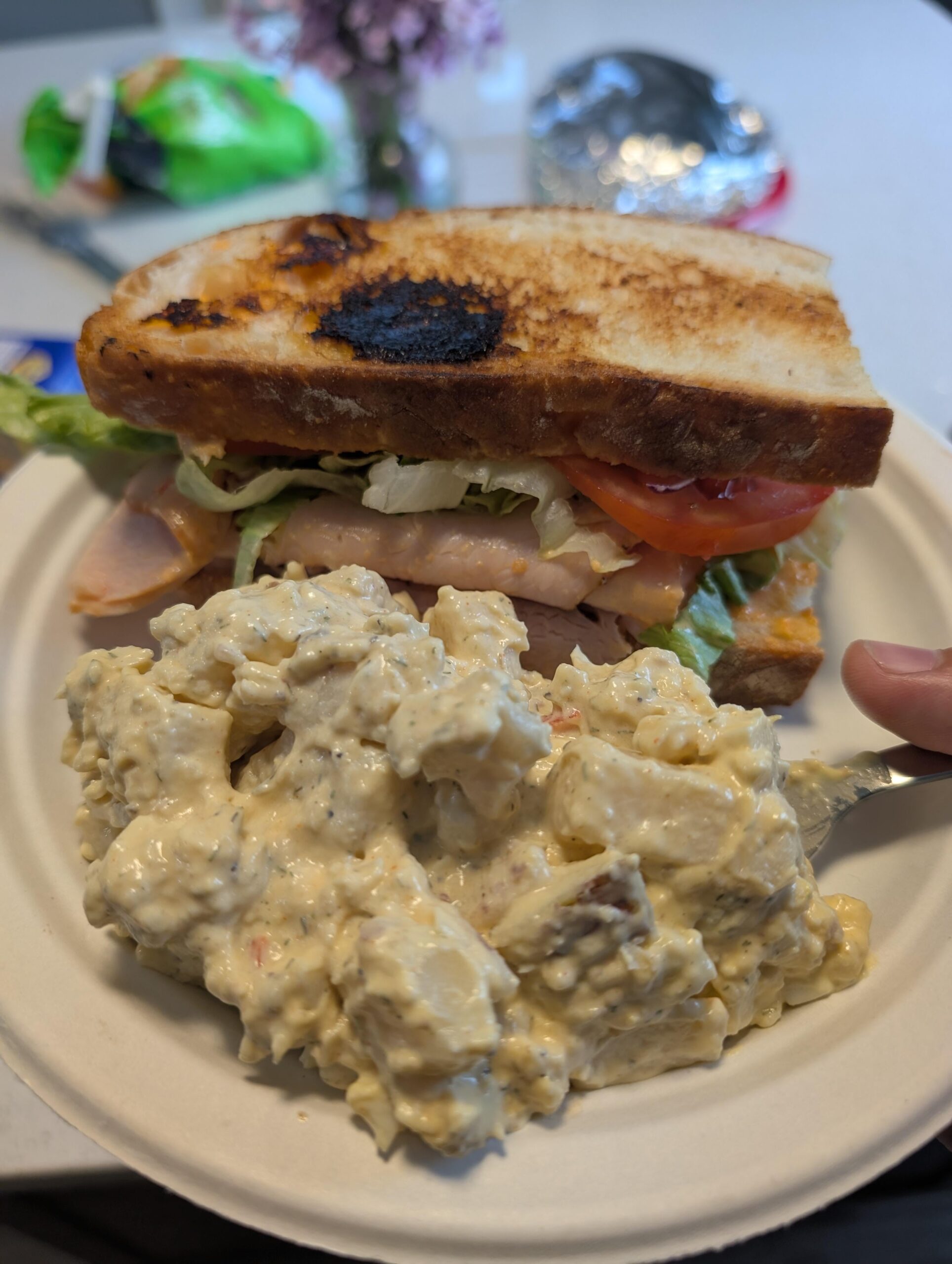 Red bell pepper chedder mayo, turkey, lettuce onion tomato, deviled egg potato salad by get_gooser 5 Comments Kittensmittens27 5 months ago I want that tater salad. RICJ72 5 months ago Gimme all of that. Seriously beautiful sammie and spectacular side. Well done. Yaughl 5 months ago That looks like a great potato salad Fabulous_Hand2314 5 months ago Man, I don’t know if I could pick any chips over a good potato salad. notoriouseyelash 5 months ago woaa nellyWrite A CommentYou must be logged in to post a comment.