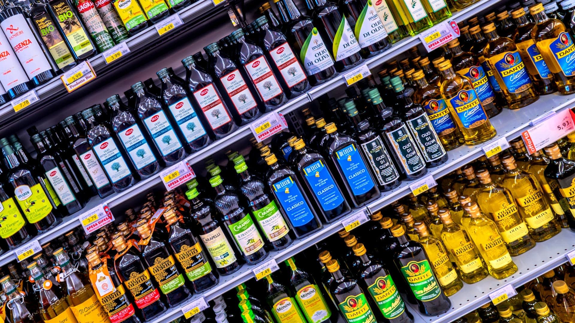 Hanging above the vinegar and olive oil aisle in a supermarket in central Italy, a large sign encourages consumers to buy extra-virgin olive oil at €4.99 per liter.
