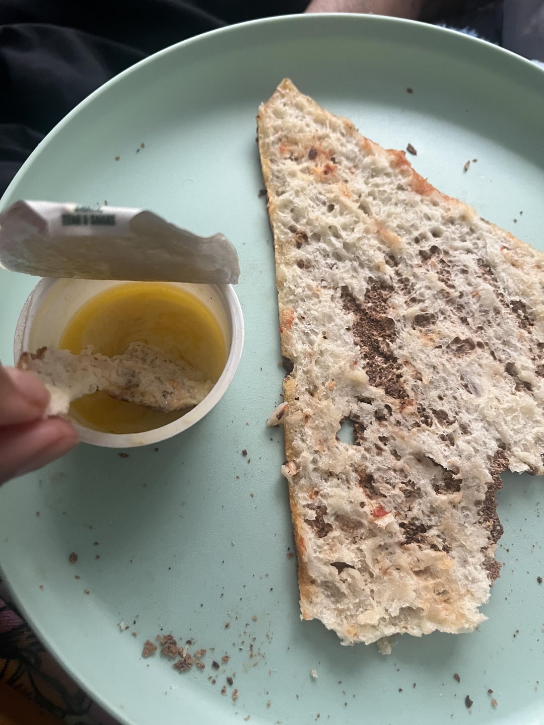 Me: “You eat a piece of pizza like a fussy vulture. Good bits first, bad bits last.”