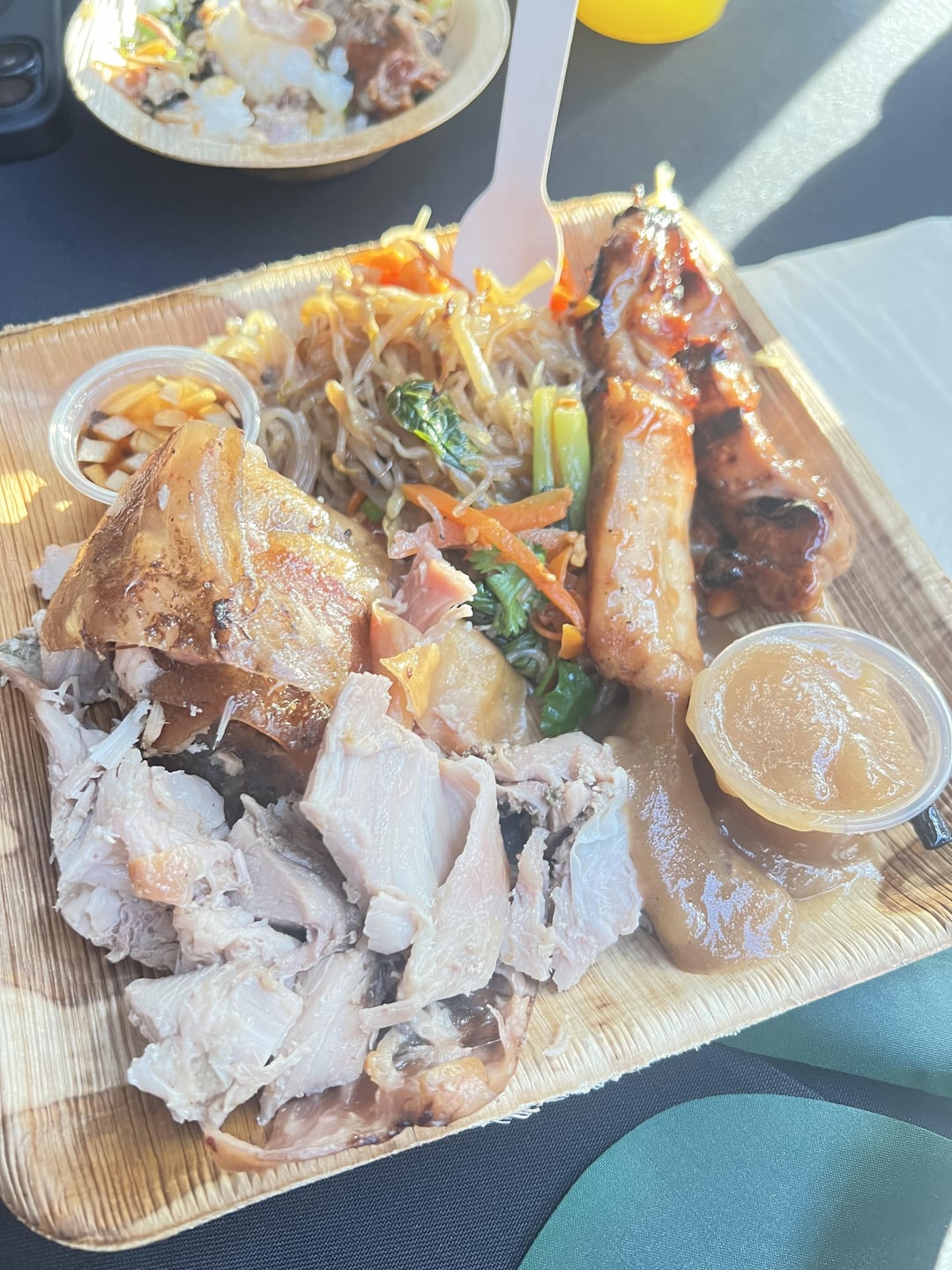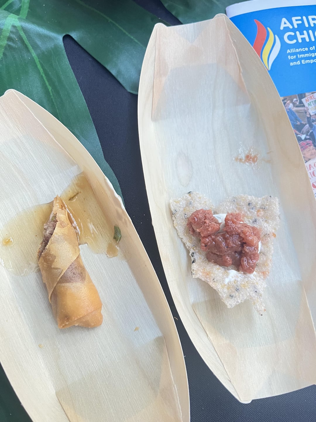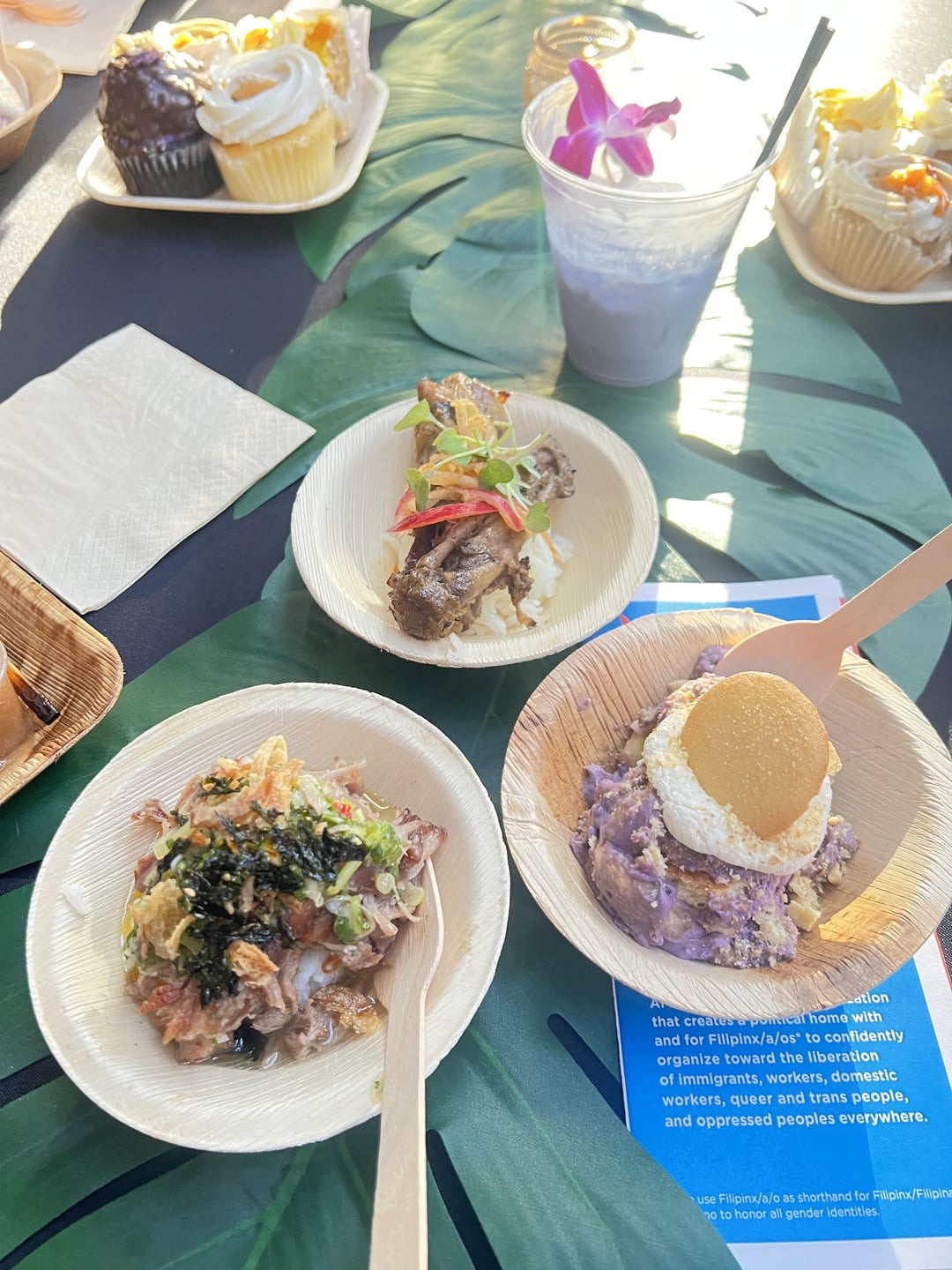 Chi-Ibigan was absolutely delightful and delicious! We were second in line to get in and we were able to secure a table for my group and grab drinks before the line was too long. The ube acoholic drinks were delicious ($10 each) and the free NA cocktails & soda was a nice surprise. The food kicked off around 6:30 and in the beginning there were lines but it moved quickly and soon you were able to just walk up to tables and grab what you wanted (as much as you wanted). There was plenty of food! Highlights for me was Kasama’s Lamb Ribs, Kanin Kalua Pig, Boonie’s Adobong Pating (skate wing not real shark) and of course the Del Sur Turon Danish and Calamansi Pandan Cake. The only disappointment for me was the Bayan Ko Duck Wing Inasal. It was too cold and just didn’t match up to the other really great food. All in all it was a fun event, with great food, worth the price of admission and I would totally go again. We even took home some JenniVee cupcakes which were also good. I’ve always wanted to go to the Top Chef like event and this was absolutely that!