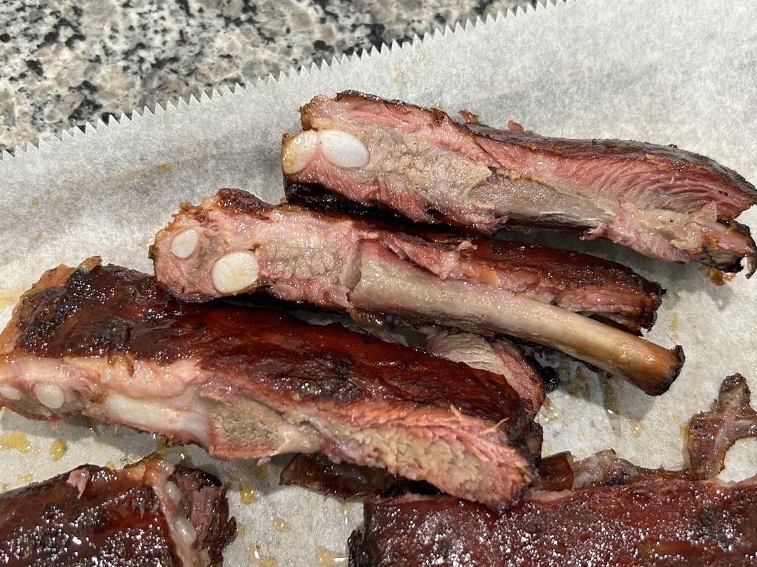 Looks great. I trimmed the cartilage pieces off before I cooked spare ribs last time and cooked them separately.
