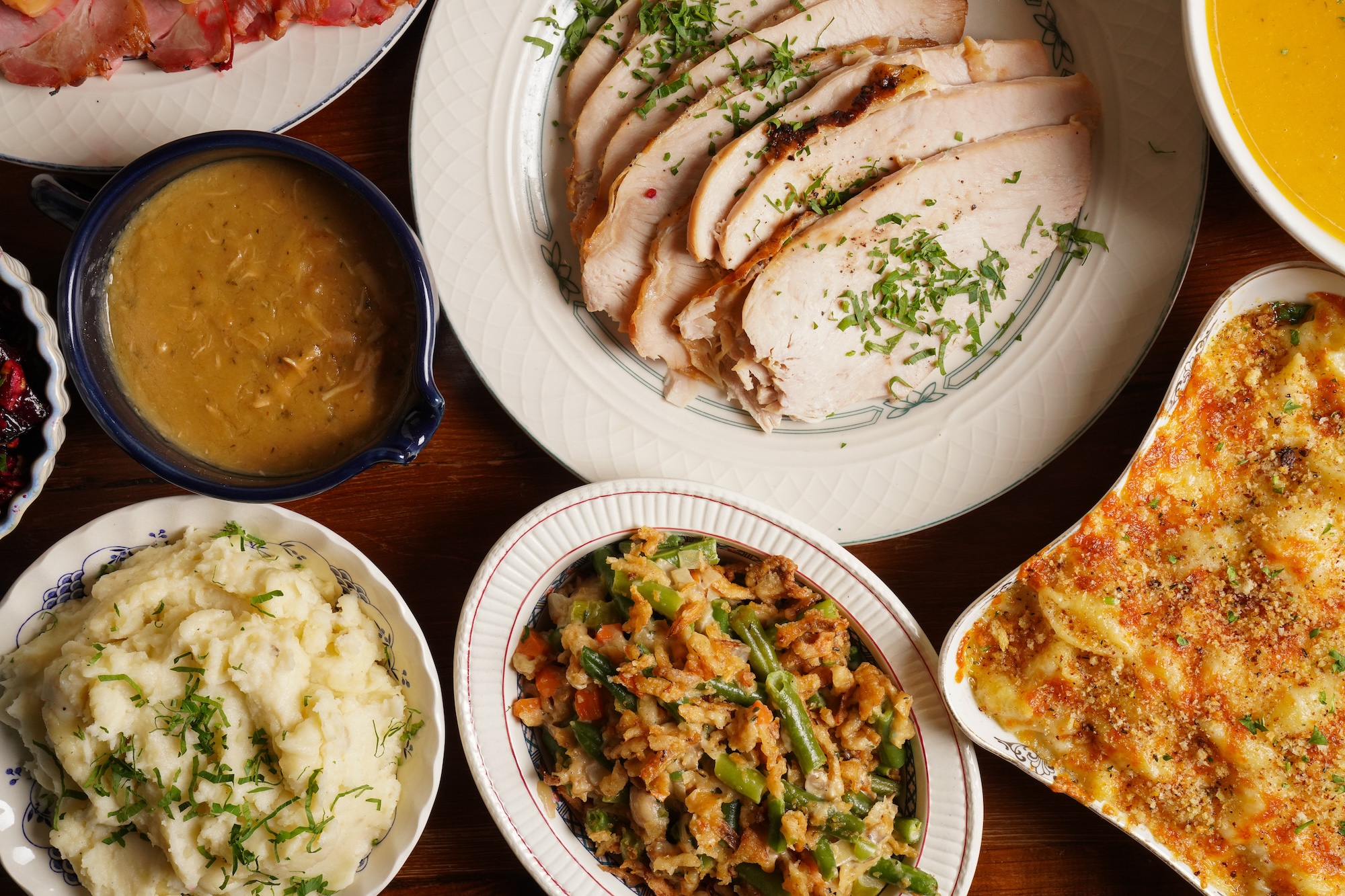 A New York City staple since it opened (on Thanksgiving Day 1990!), Bubby’s never disappoints, especially if you’re looking for classic comfort food. For a Turkey Day feast, Bubby’s is selling a $200 take-out meal for two with deviled eggs, market salad, pickled vegetables, and buttermilk biscuits as starters, a turkey and ham for the main, and cornbread stuffing, green bean casserole, candied sweet potatoes, roasted seasonal root vegetables, cranberry sauce, and mashed potatoes for sides. And for dessert, one slice each of Apple Whiskey Crumble, Pumpkin Praline, and Sour Cherry pies. Whole pies are also available a la carte for $50. The meal, intended to serve two, comes cold with heating instructions. Pick-up is on November 28 from 10 a.m. to 2 p.m.