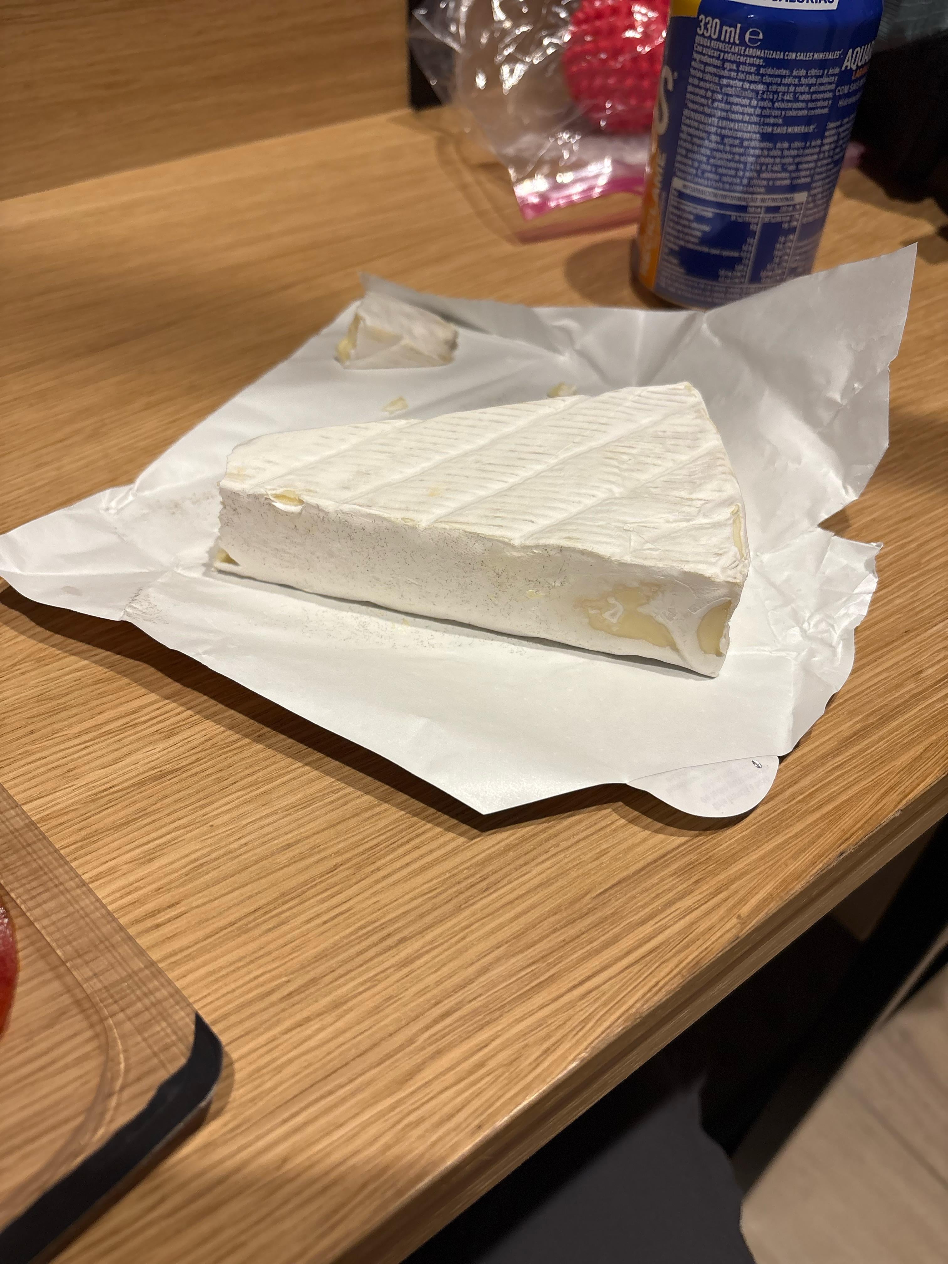 Just bought this cheese from a supermarket in Spain. I don’t think I’ve ever actually opened a Brie package before. I can’t tell if this is rind or paper. Also, are the dark spots okay? Main reason I’m questioning is because when I cut the chunk off the separation was hairy like paper but there isn’t a straightforward way to remove it. Thanks in advance!