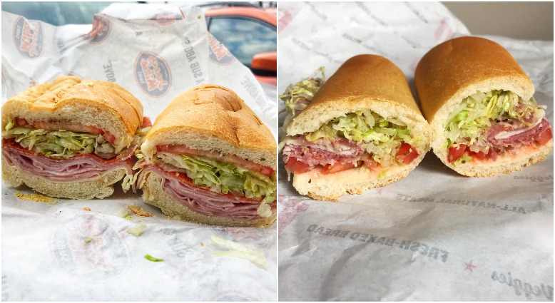 Jersey Mike’s Original Italian sub, left, and Jimmy John’s Vito sub. Photos by Chris Gennone