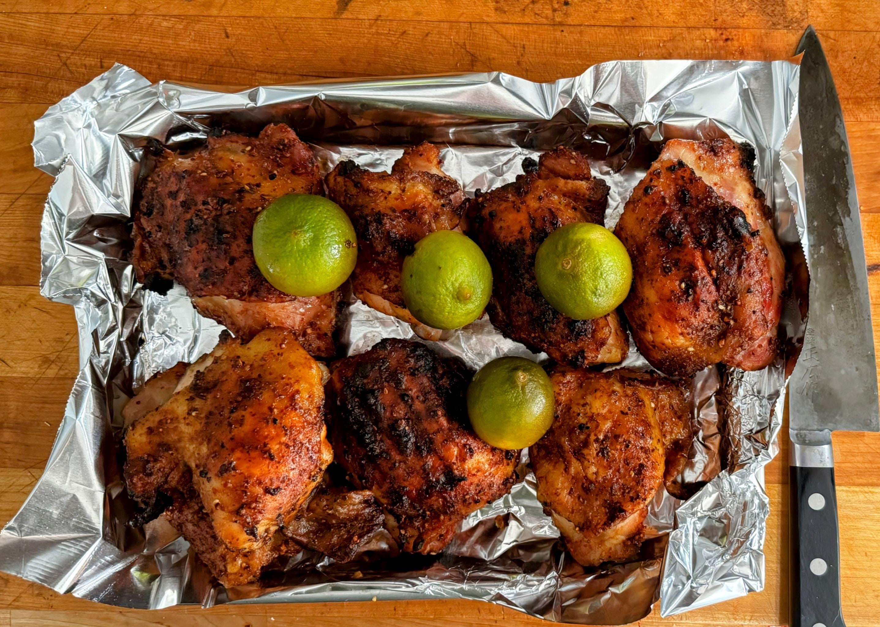 Grilled Chicken Thighs and Limes by auto180sx 1 Comment garage_band1000 10 months ago Looks good, Peruvian maybe.What do you do with the limes? Squeeze them on the chicken or make a sauce?Write A CommentYou must be logged in to post a comment.
