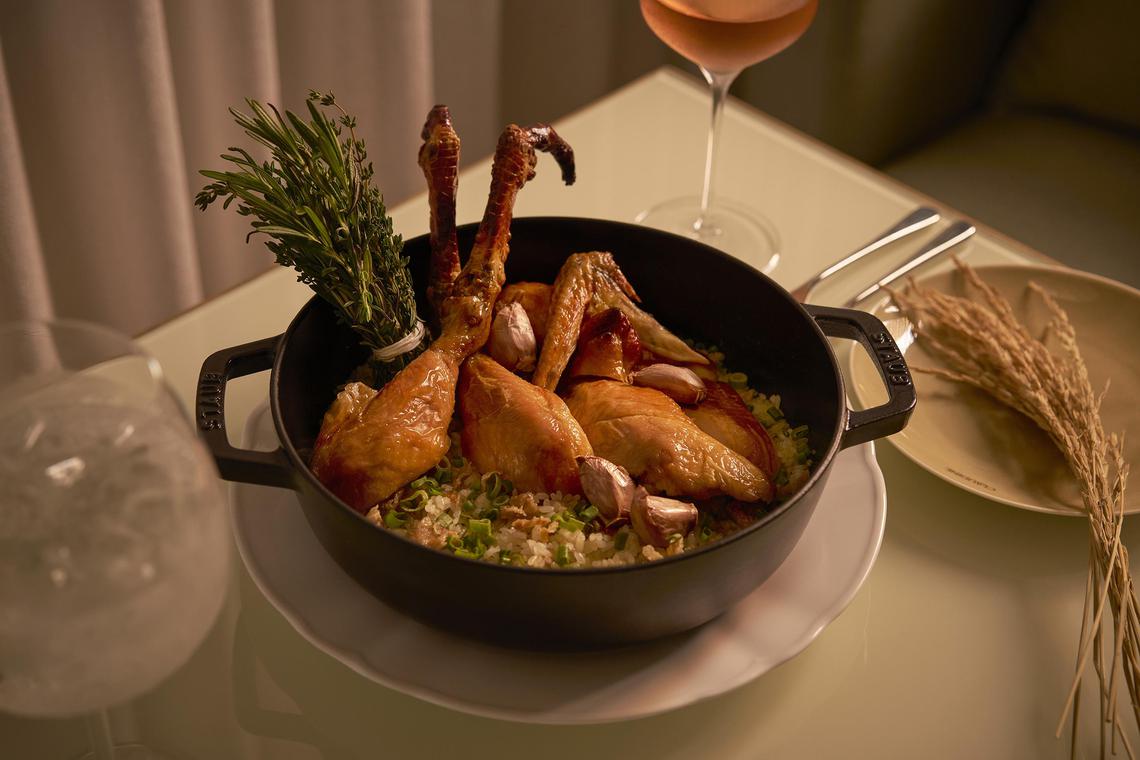 Most of the kitchen’s effort goes into the solitary main course – half a roasted chicken (S$58), beautifully browned and tender on a bed of Japanese rice cooked in broth, served in a cast iron pot with some decent socarrat at the bottom. A rich chicken jus is poured over the rice, which is garnished with crispy bits of skin and soft roasted cloves of garlic. Squeeze out the garlic, mix with the rice and chicken, add a touch of extra sauce and you’ve justified your visit.