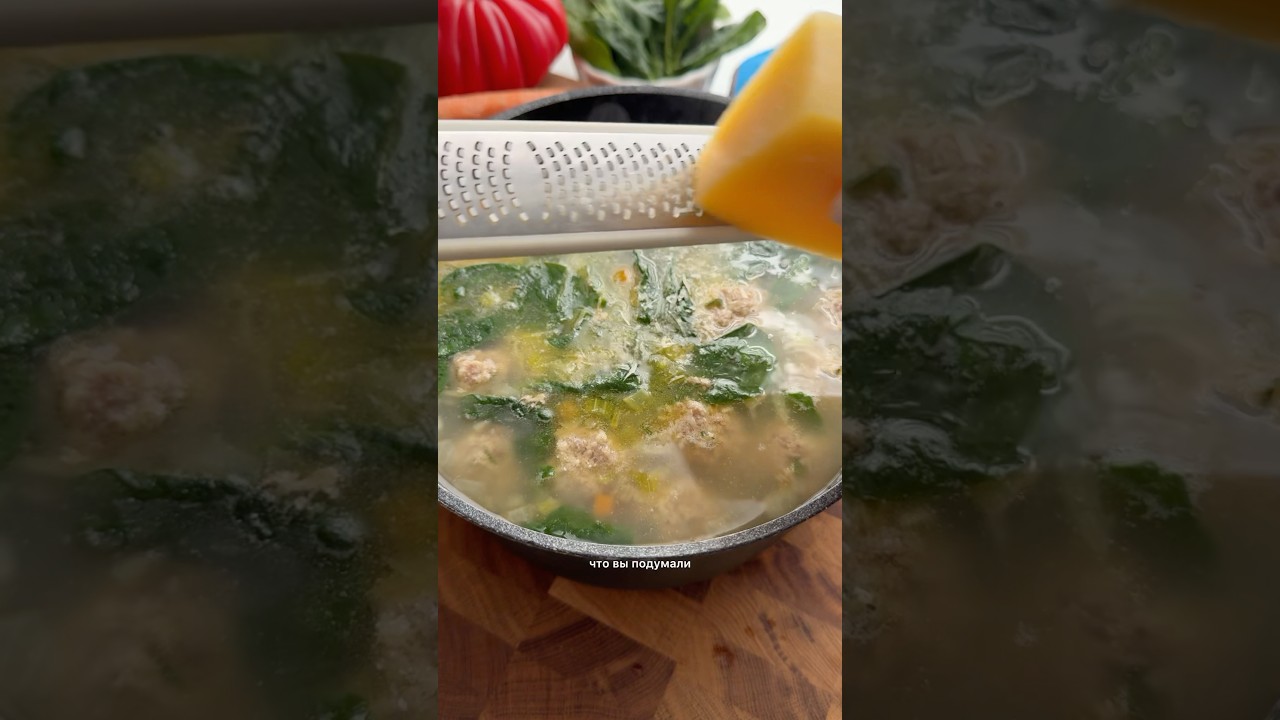 Нет, это не то, что вы подумали. Это настоящий итальянский свадебный суп, который вы будете готовить постоянно, потому что он получается безумно вкусный. В первую очередь делаем необычные фрикадельки. Для этого смешиваем мясной фарш, лук, пучок петрушки, немного панировочных сухарей, яйцо, пармезан и немножко разных специй. Затем мелко нарезаем сельдерей, морковку и лук. Обжариваем это на сливочном и растительном масле до золотистого цвета. Сюда же вливаем воду, ждём, когда она закипит, и затем закидываем в фрикадельки. Через 5-10 минут добавляем вермишель. Я использую вермишель из амарантовой муки от корпорации DND. Богато белком, высокое содержание сквалена и отлично подходит, чтобы разнообразить рацио. Как только вермишель сварилась, сюда же добавляем шпинат, пармезан и, собственно, это конец. Идеальным дополнением к такому супу будет сделать бутербродики с чесночком и помидоркой и насладиться по полной. Кстати, также у бренда есть сладости без сахара, которые станут прекрасной альтернативой для тех, кто отказался от него. У компании большой выбор продуктов без глютена и сахара. Все артикулы оставила в описании. Переходите туда. Yeah.