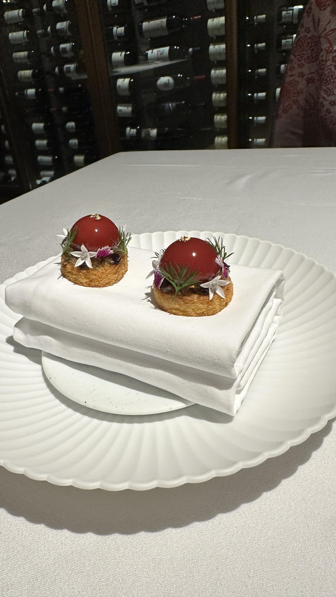 I do love how all the dishes incorporate flowers into the cook, so you can get a slight floral hint in the bites. My favourite is definitely the first amuse bouche and the dessert.