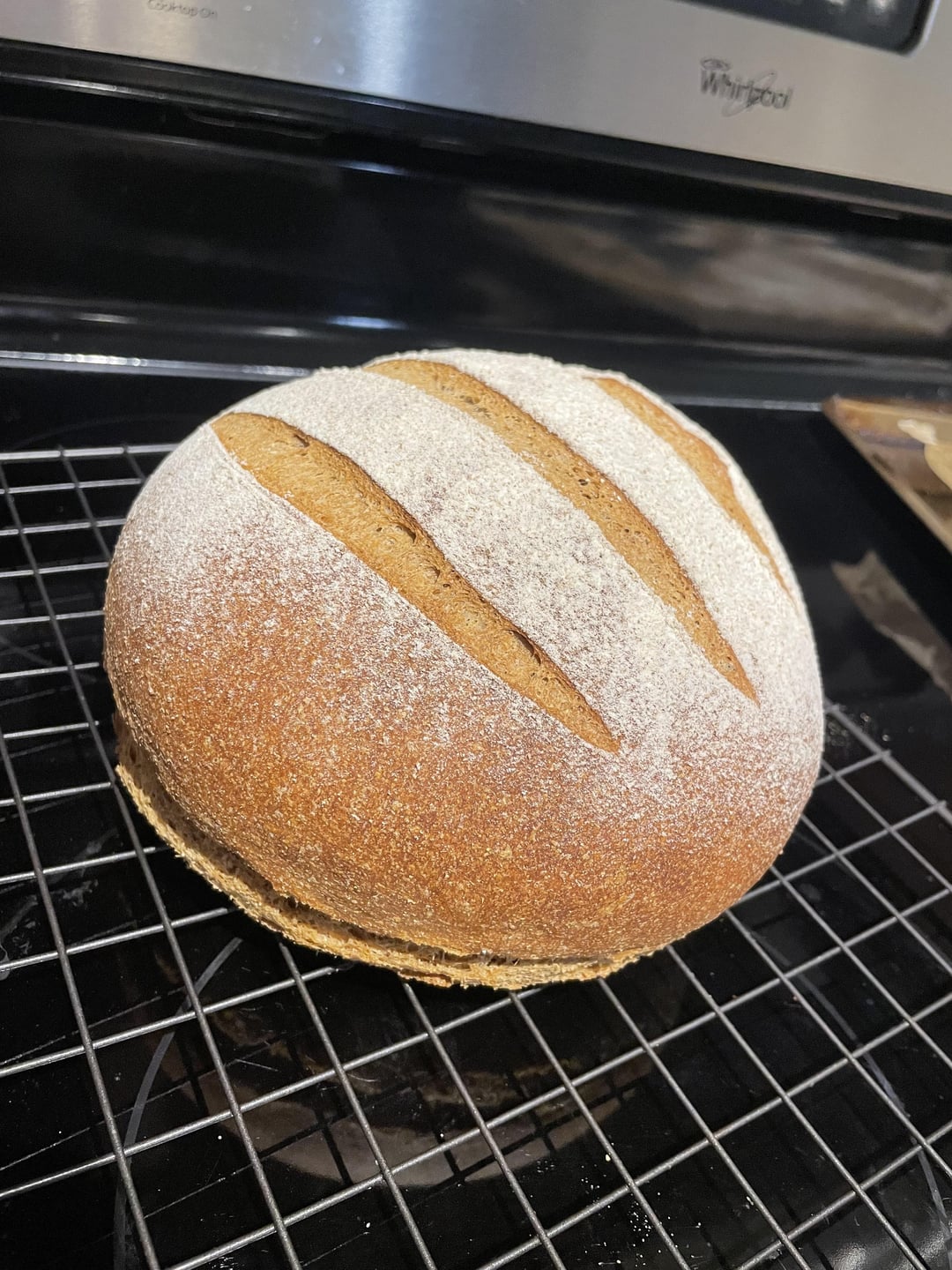 Hey Breddit, it's finally time for me to stop lurking and post. Here is my bread of the day, a Guinness and treacle bread from Paul Hollywood's book "100 Great Breads." I didn't have any treacle on hand, so I substituted molasses, and I think it turned out quite well (besides the blowout).