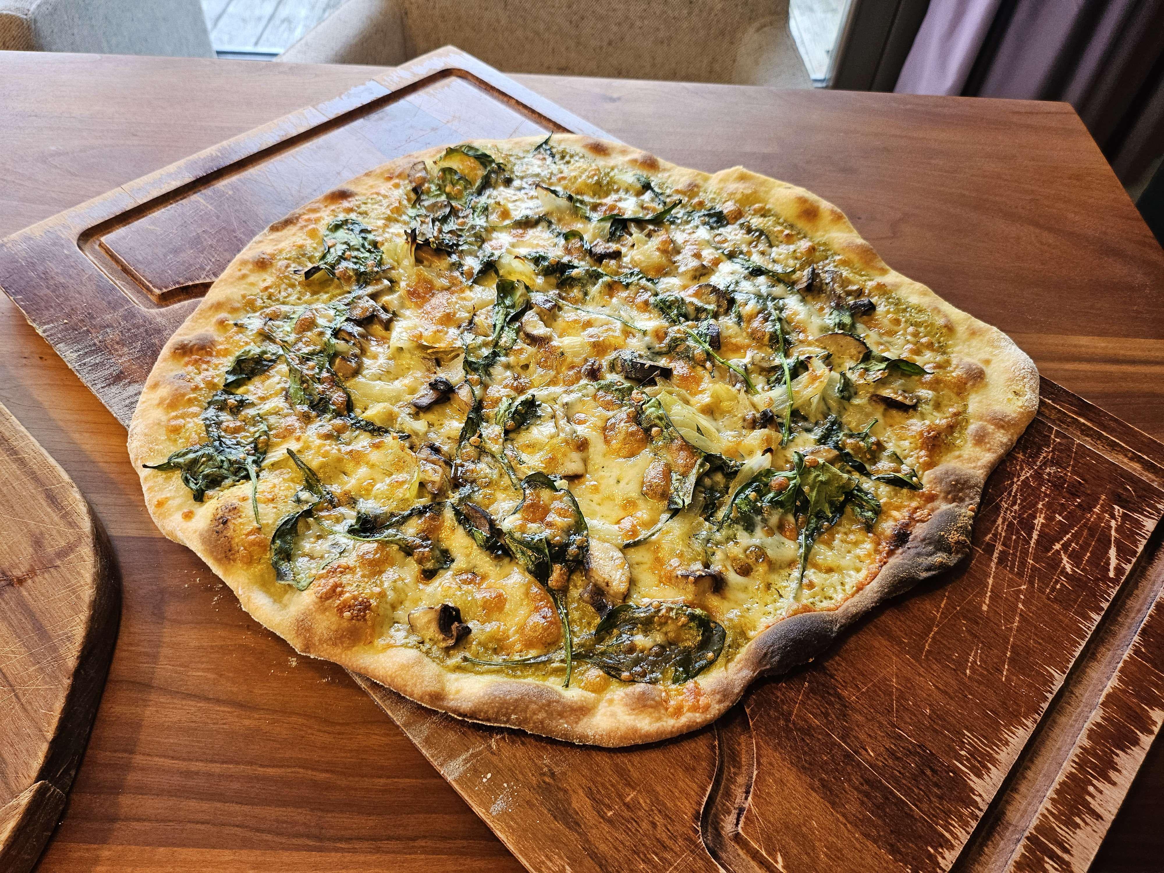 Pesto, garlic, mushroom, onion? Good.