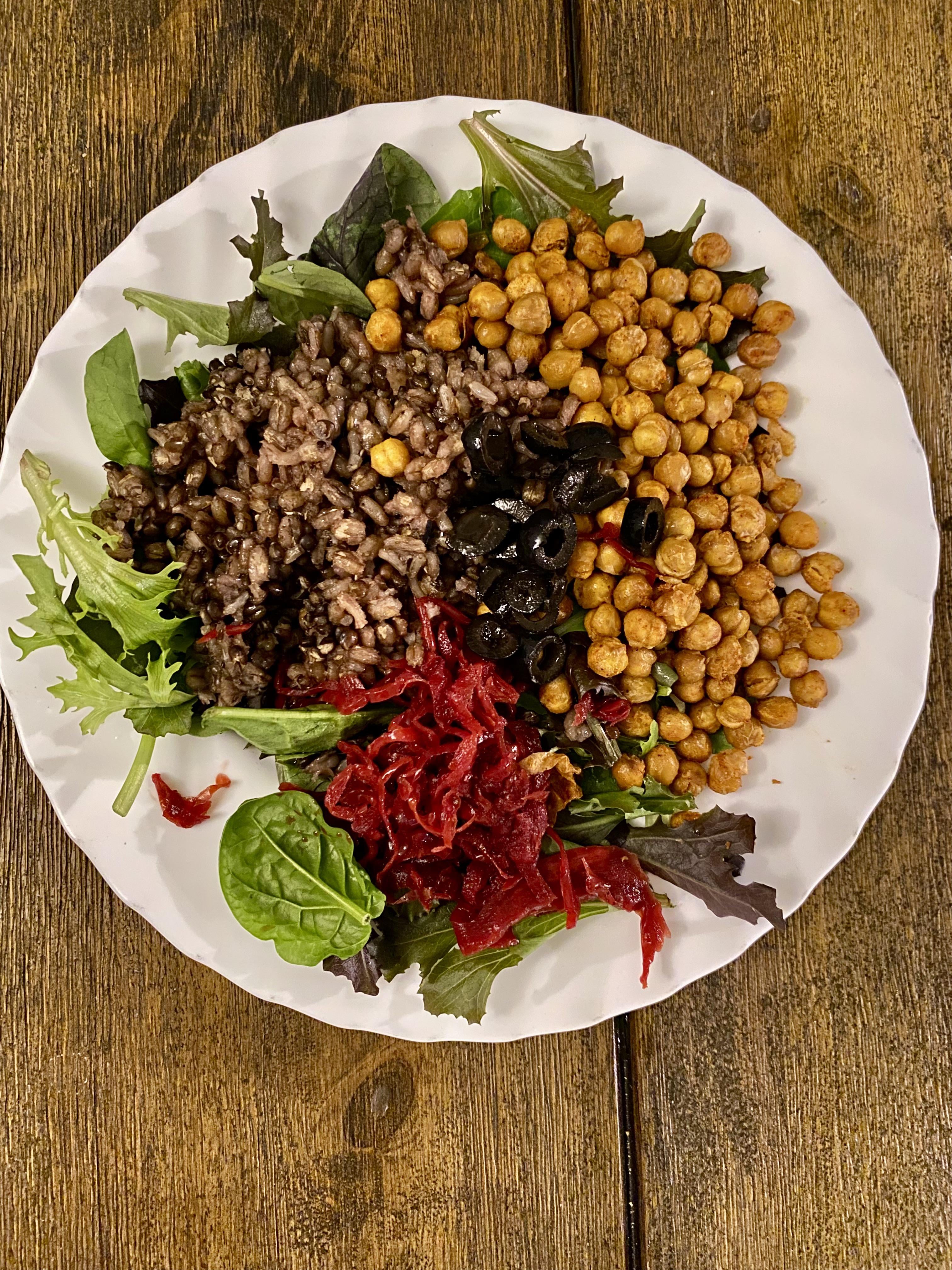A blend of barley, quinoa, brown rice and french lentilsAirfried chickpeas – paprika, cayenne, salt and pepperBeet kraut and some sliced black olivesOn bed of seasonal greens, drizzled with evoo and a spritz of lemon by Ok-Love3147 1 Comment Unfair_Vermicelli219 8 months ago Yum. Did you make everything from scratch?Write A CommentYou must be logged in to post a comment.