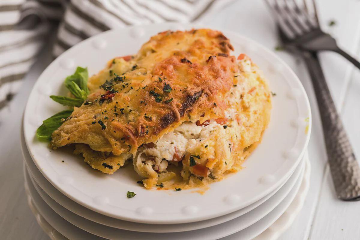 **Italian crespelle** – chicken alfredo crepes are thin savory crepes filled with seasoned chicken and cheese, baked in creamy tomato alfredo sauce until golden.