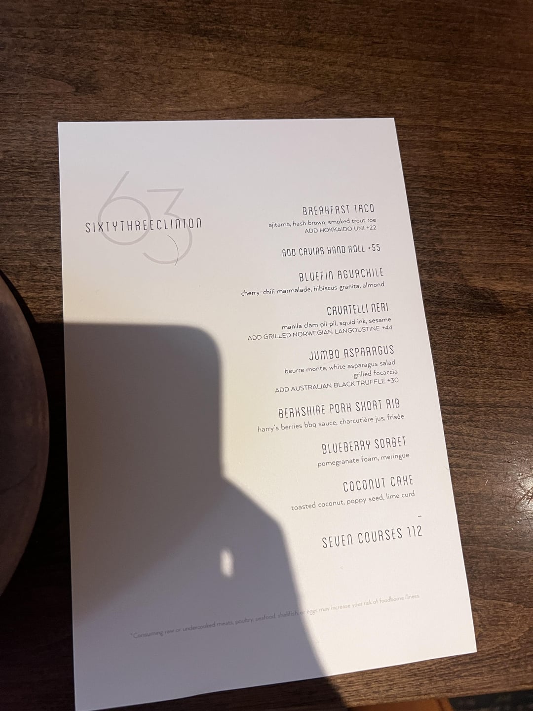 Had a great time at 63 Clinton tonight, vibes and hospitality were amazing. Standout courses were the bluefin aguachili and the blueberry sorbet. Will def be back!