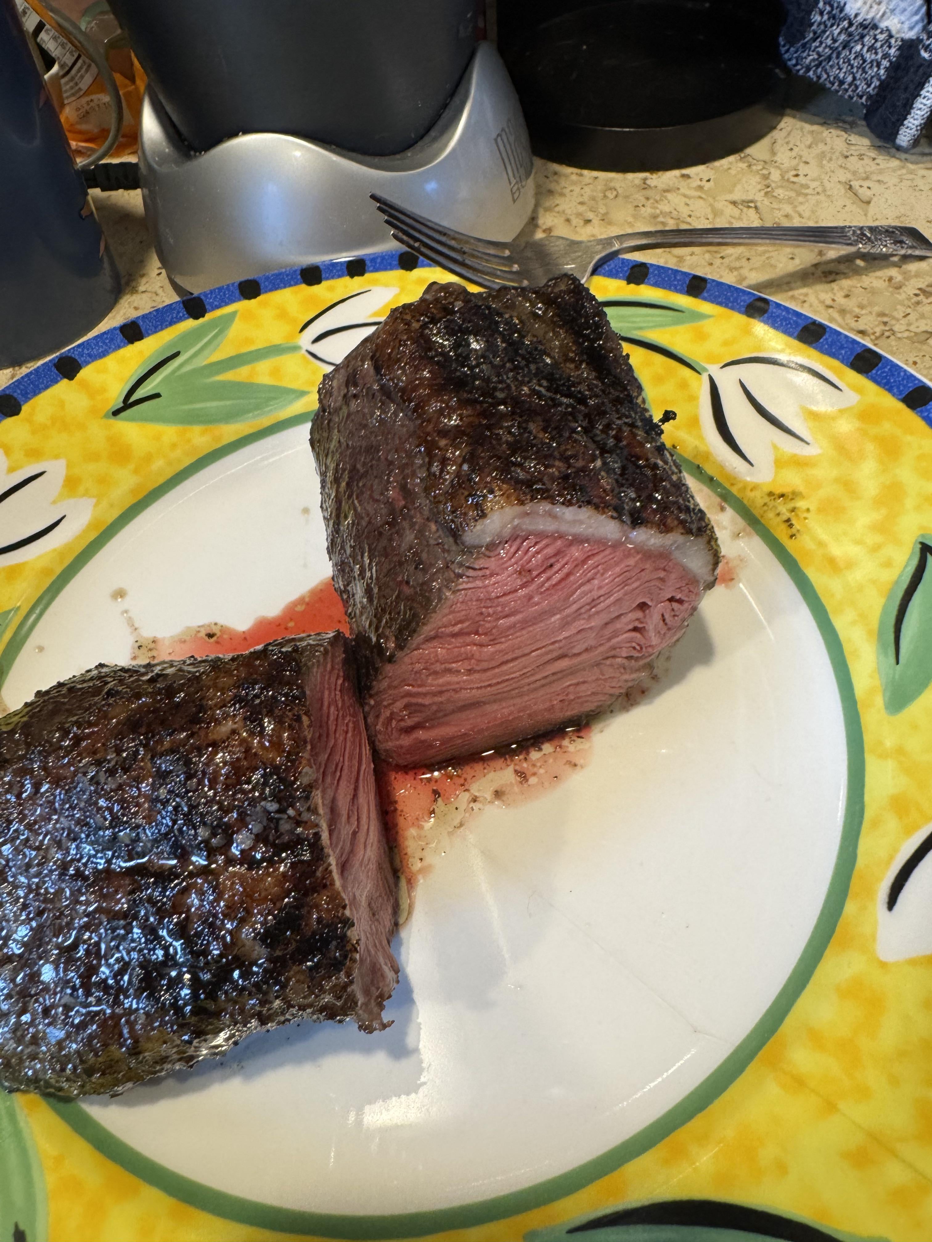 A great cut but when slicing it up cut across the grain not with it.