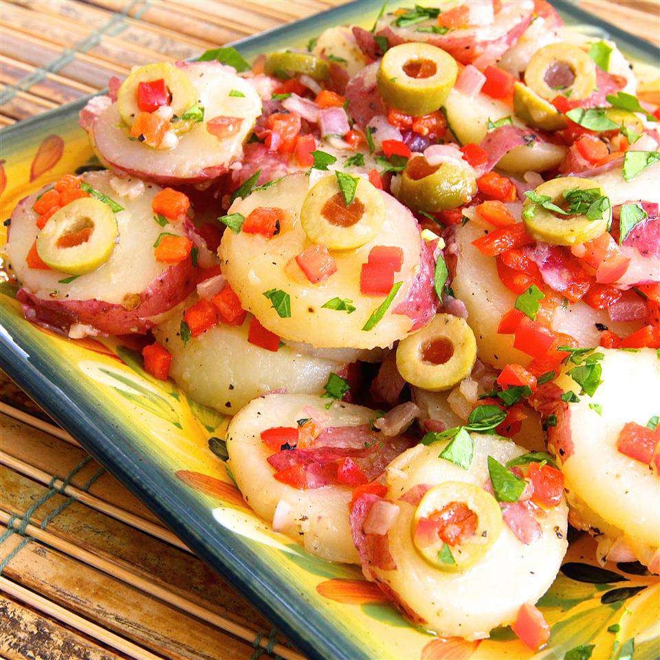 Instead of a regular potato salad, try this piquant Spanish version for a change.