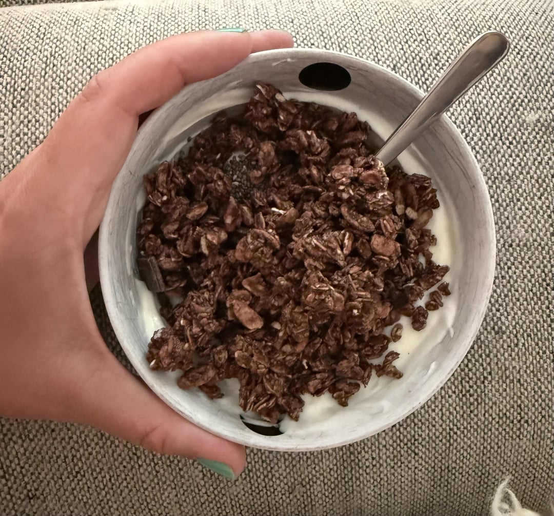 Snack: Greek yoghurt with chia seeds and sugar free crunchy muesli