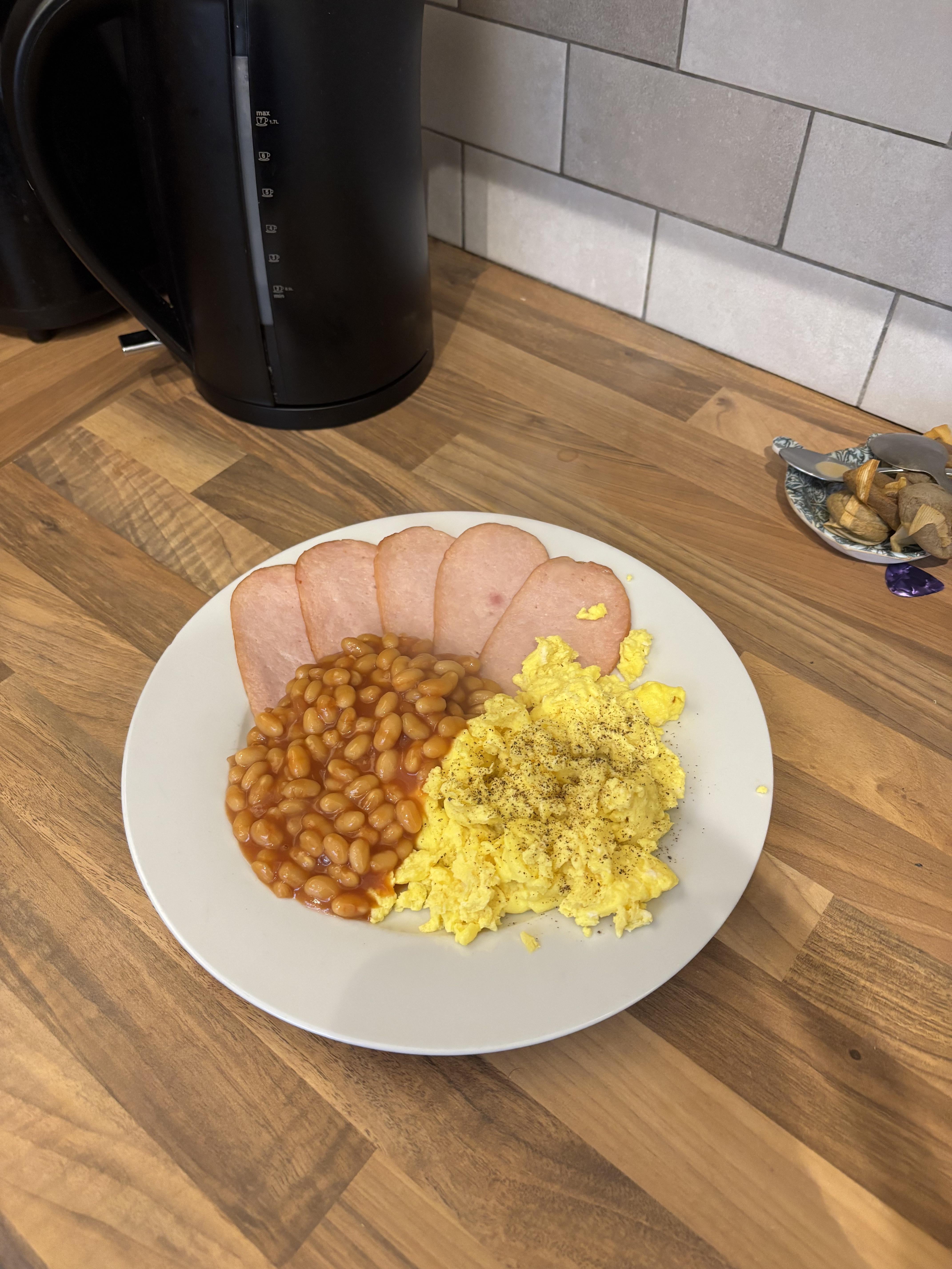 Turkey bacon, beans and scrambled egg. I'll redeem myself on cheat day. I sincerely apologise if this offended anyone. Do your worst… by [deleted] Write A CommentYou must be logged in to post a comment.