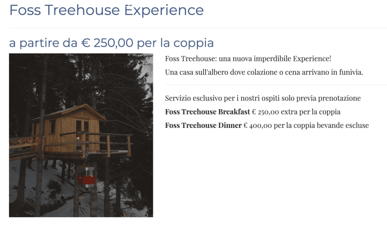 Foss Treehouse Dinner €400.00 for the couple excluding drinks